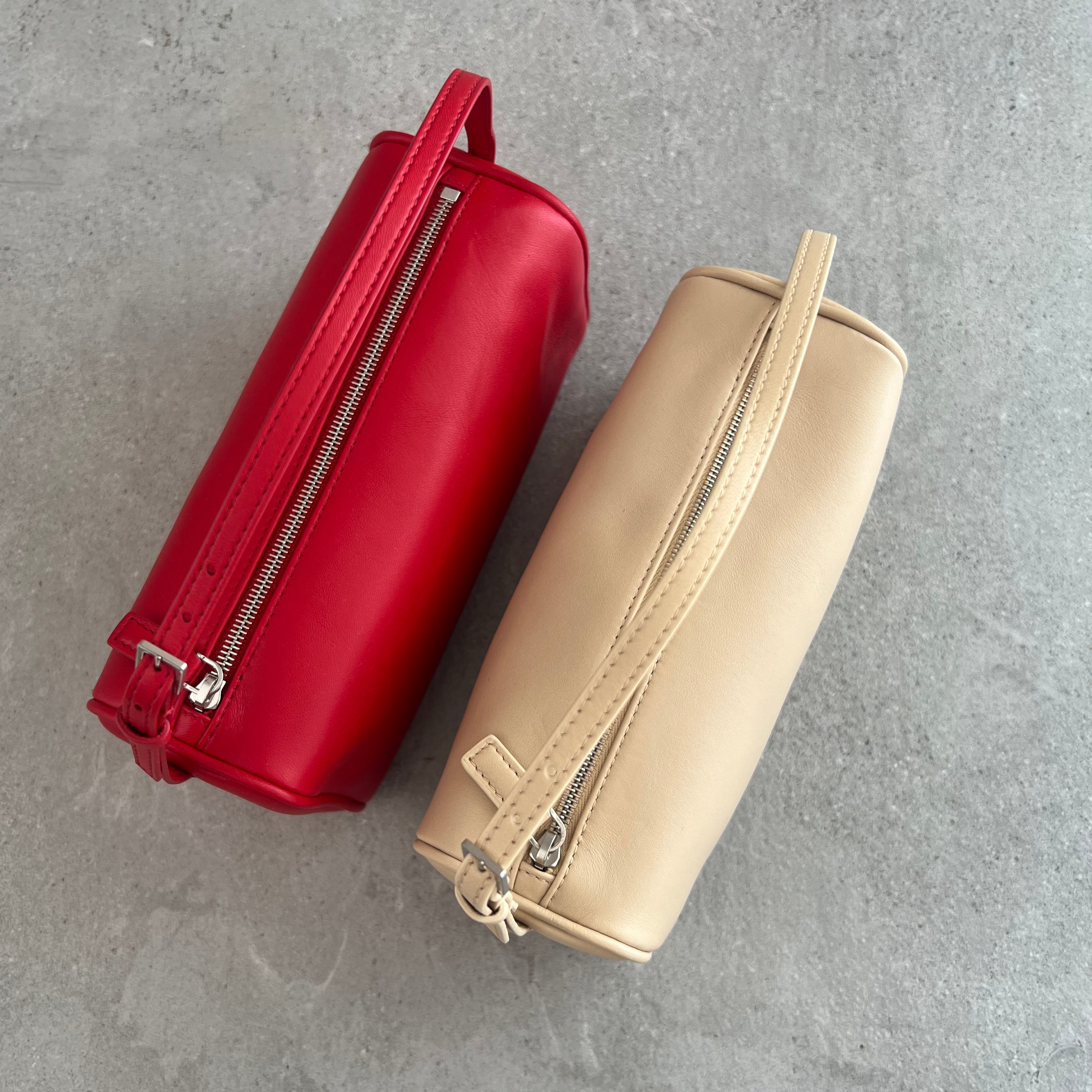 Slim Symmetry Pouchette Grained Calf, Bone (S)