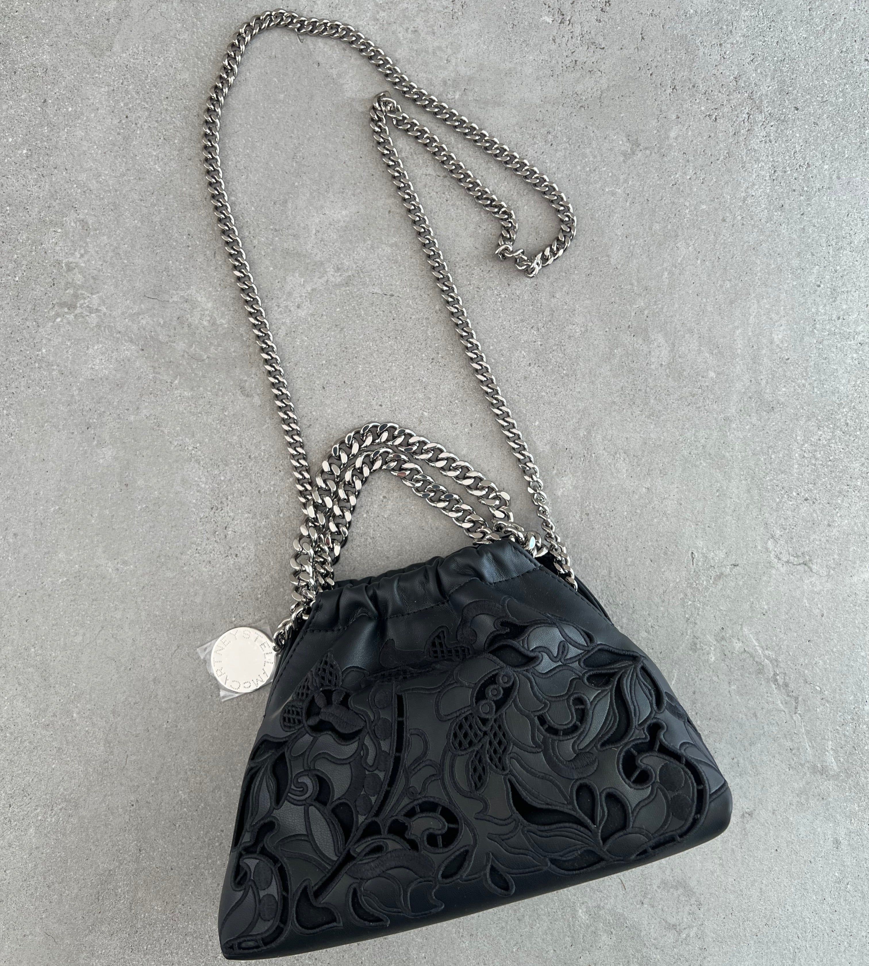 Falabella Popcorn Drawstring Tote Bag, Black (S)