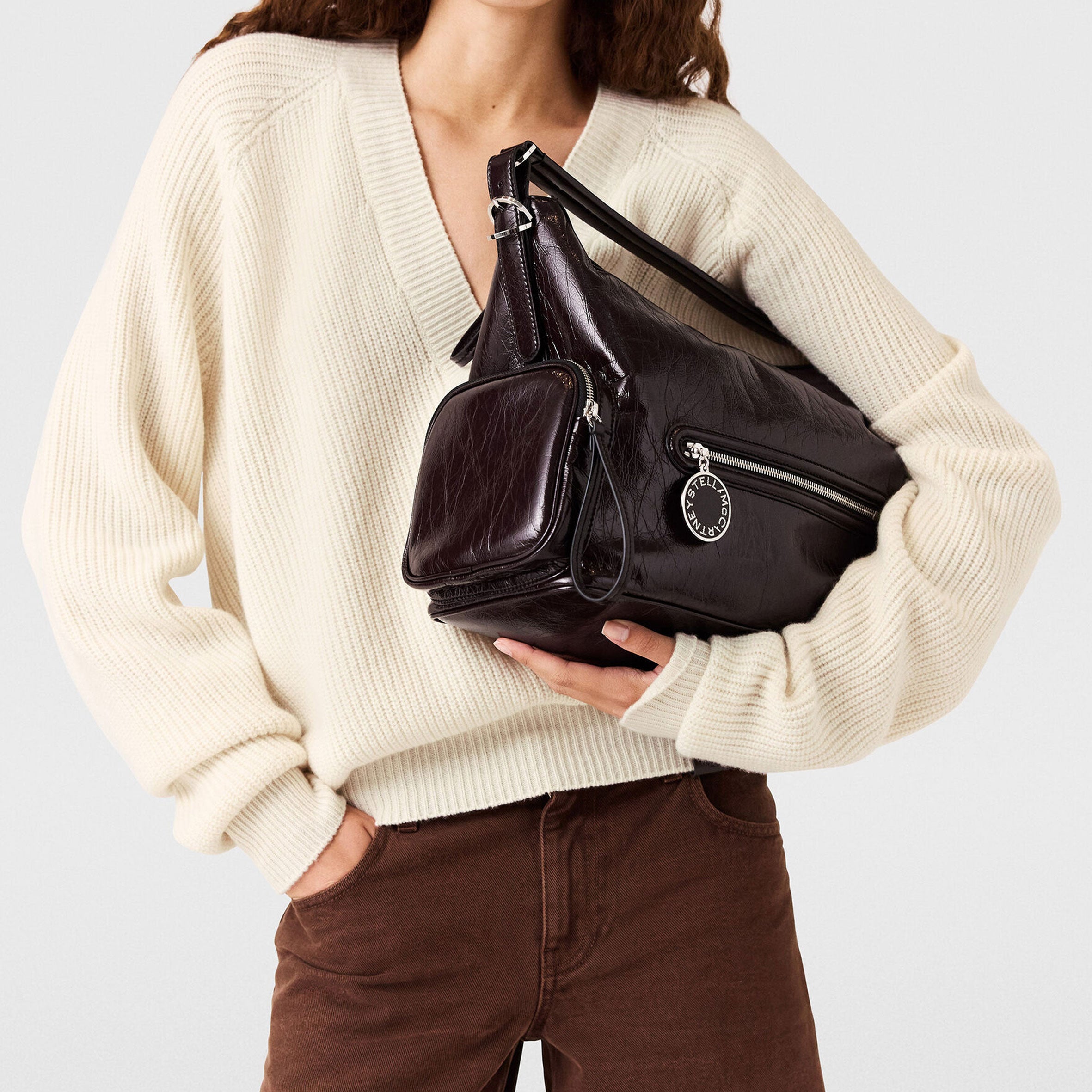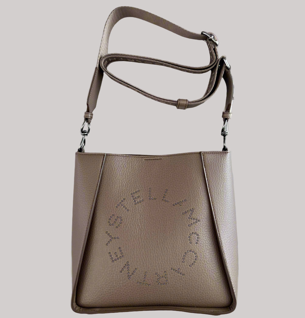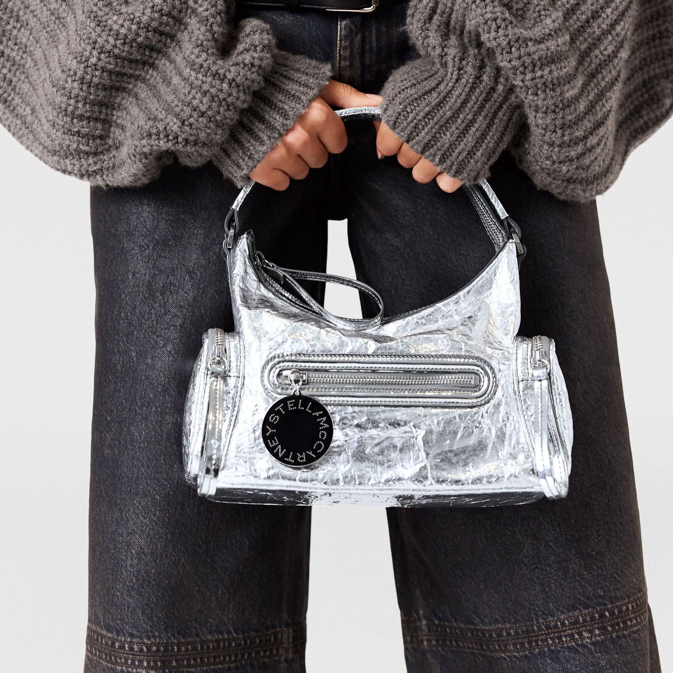 Stella Logo Mini Crossbody Hobo Grain Stud, Ash