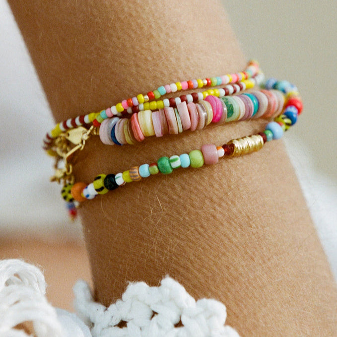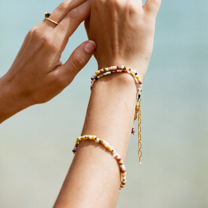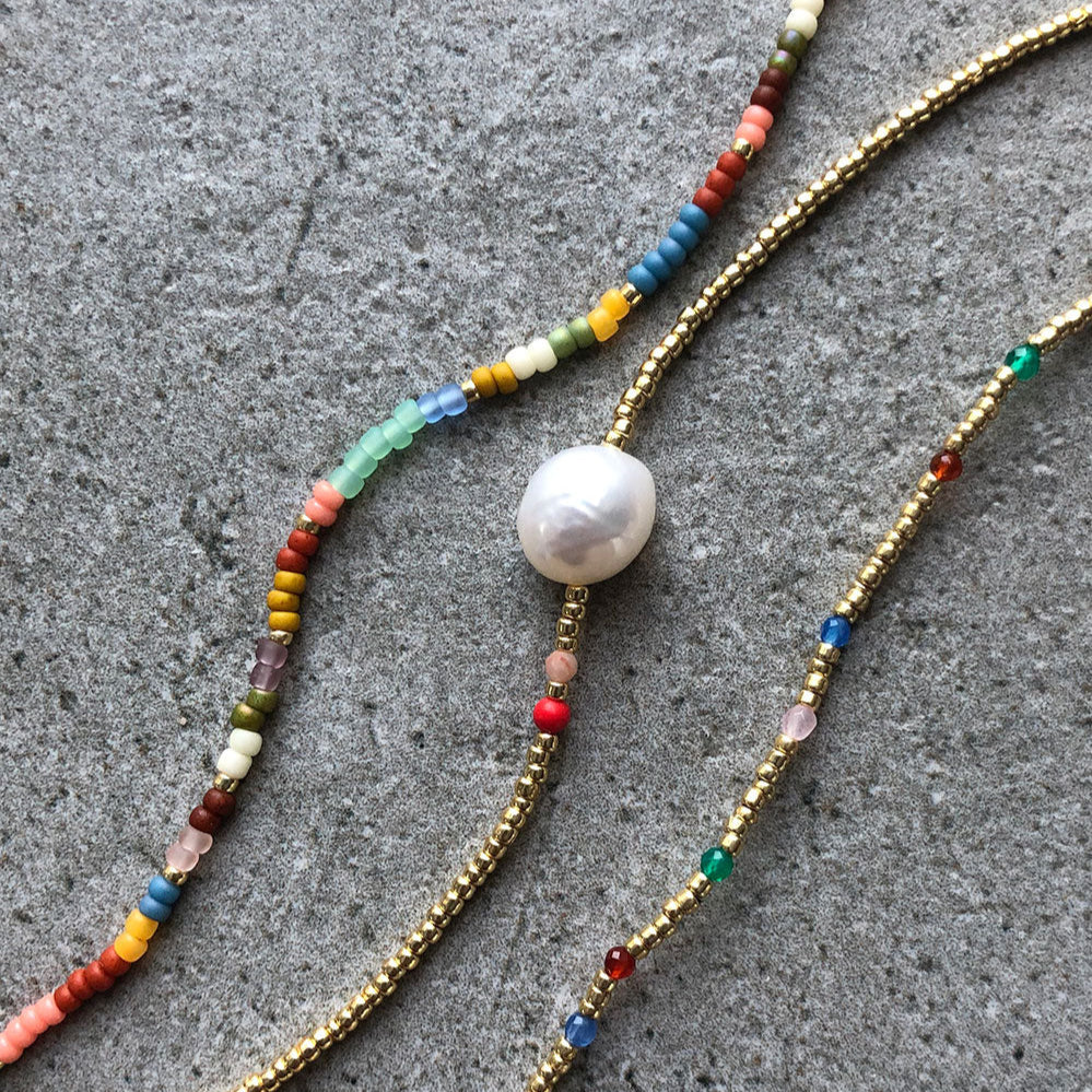 Handmade with meticulous care in the heart of Copenhagen, Anni Lu's creations radiate a playful and carefree spirit, evoking memories of sun-soaked beaches, dreamy getaways, and carefree summer days. The use of high-quality materials, including freshwater pearls, gemstones, and 18kt gold-plated brass, ensures that every piece exudes a sense of refined luxury.