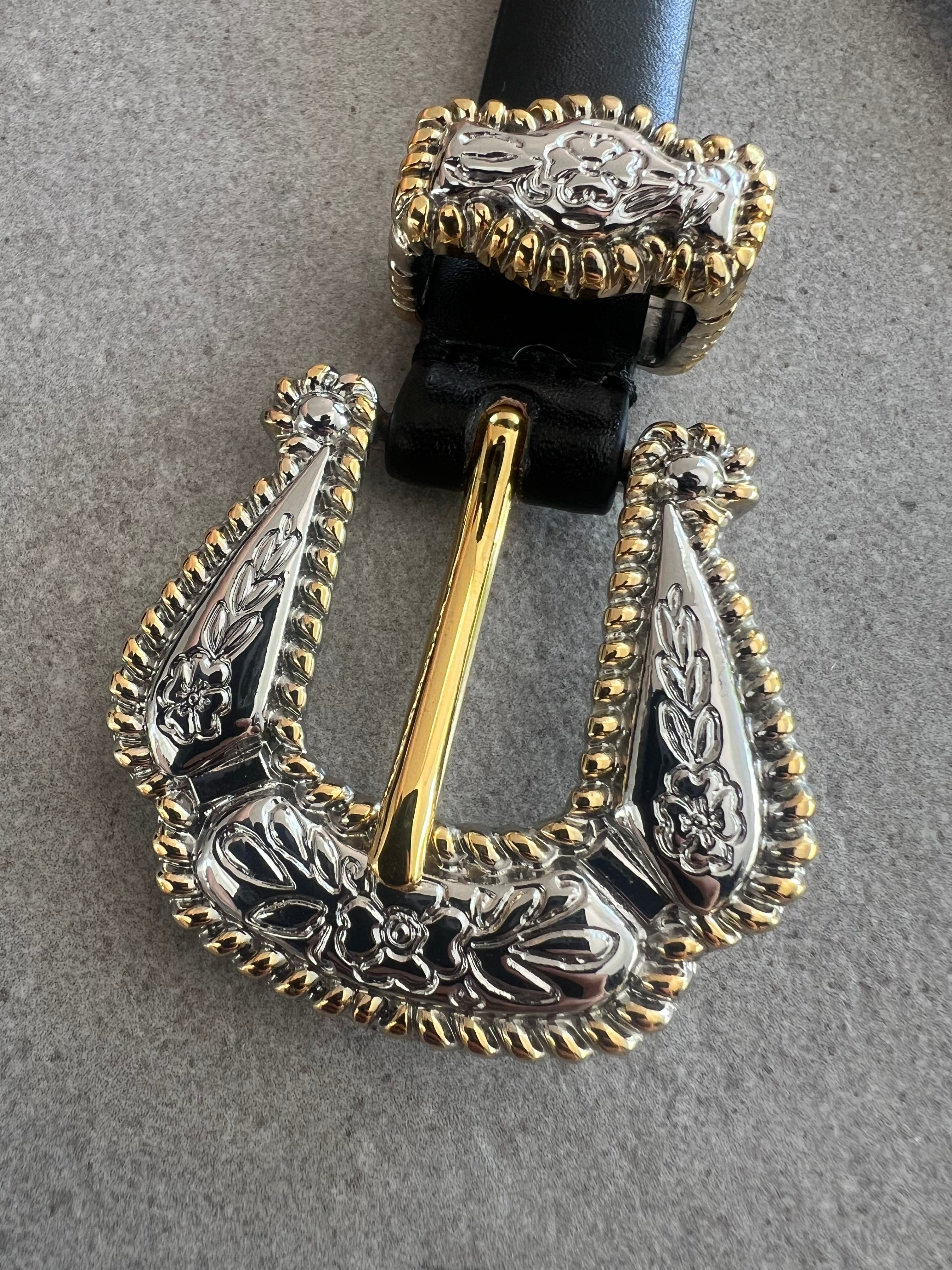 Hollyhock Belt, Black (Mixed Metal)