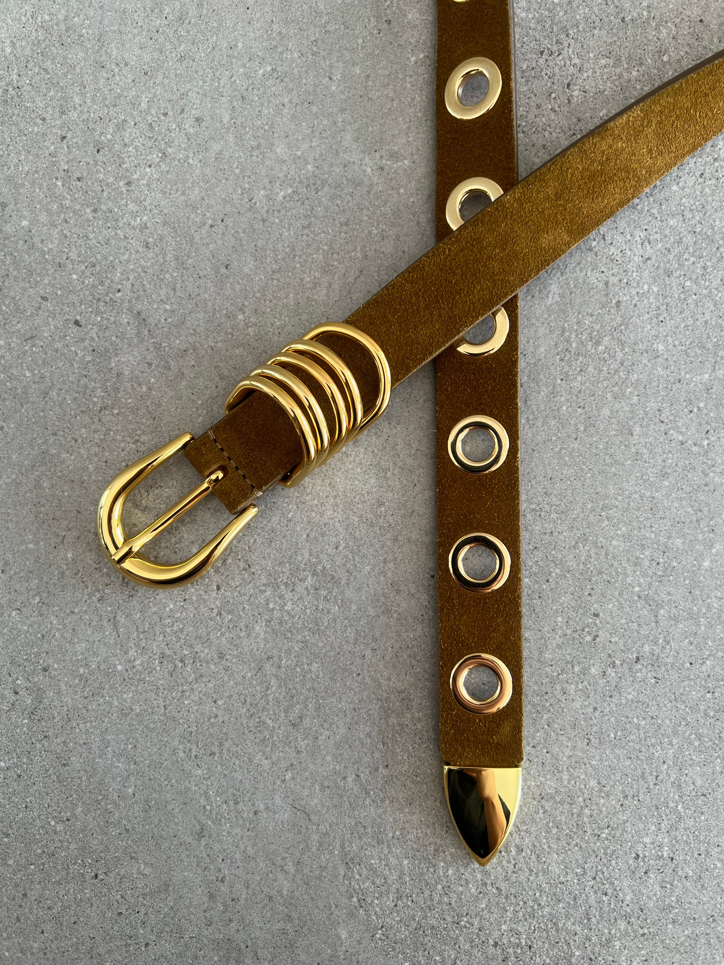Hollyhock 10 Rivet Suede Belt, Ochre (G)