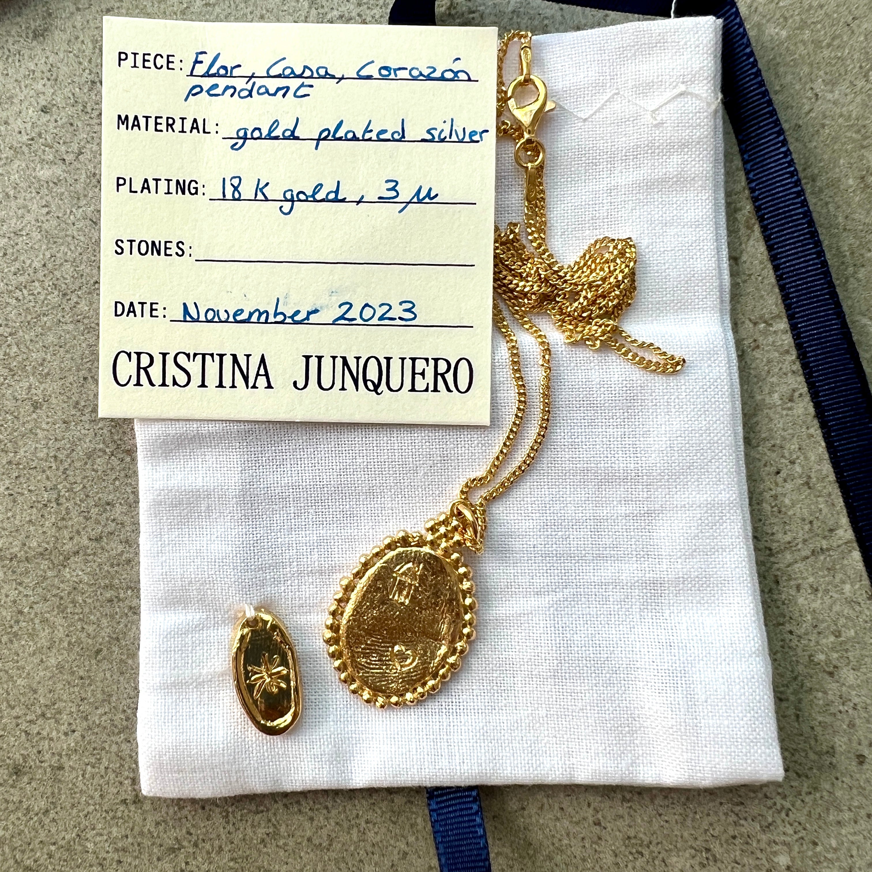 Rooted in the rich cultural heritage of Andalusian jewelry, Cristina Junquero presents a new and innovative approach to adornment, blending deeply religious symbolism with a touch of humor. Having grown up surrounded by the traditional craftsmanship of her mother's small jewelry shop in Chipiona, Cadiz, Cristina's childhood ignited a creative spark that led her to reimagine jewelry with a daring and rebellious flair.