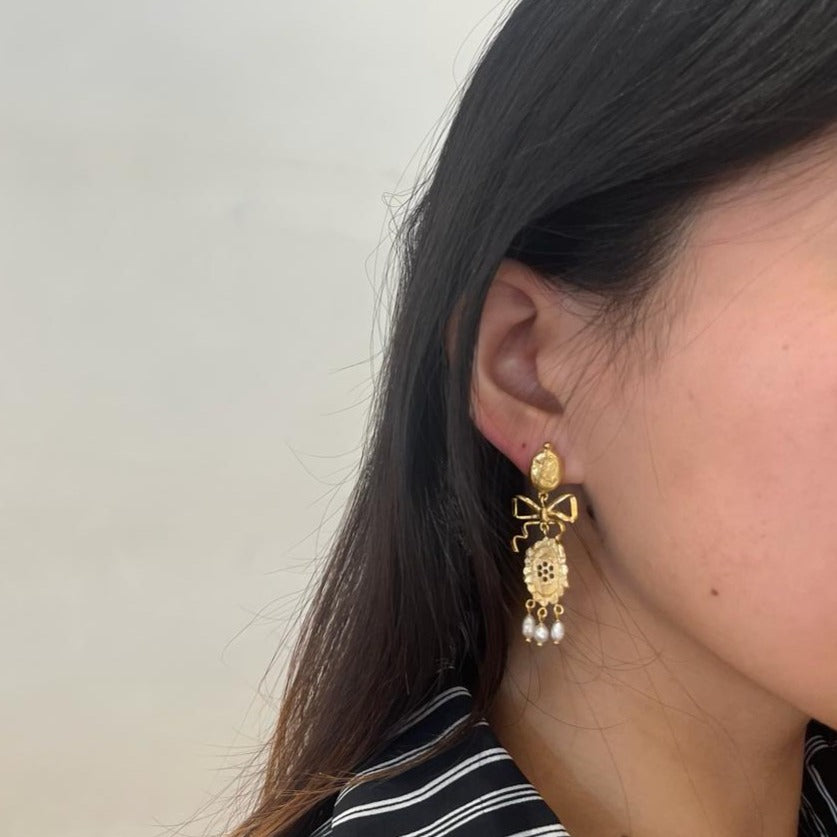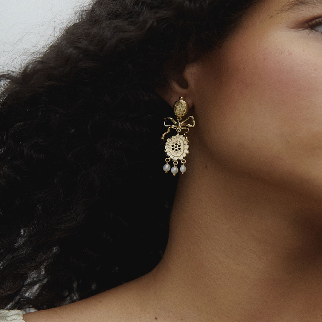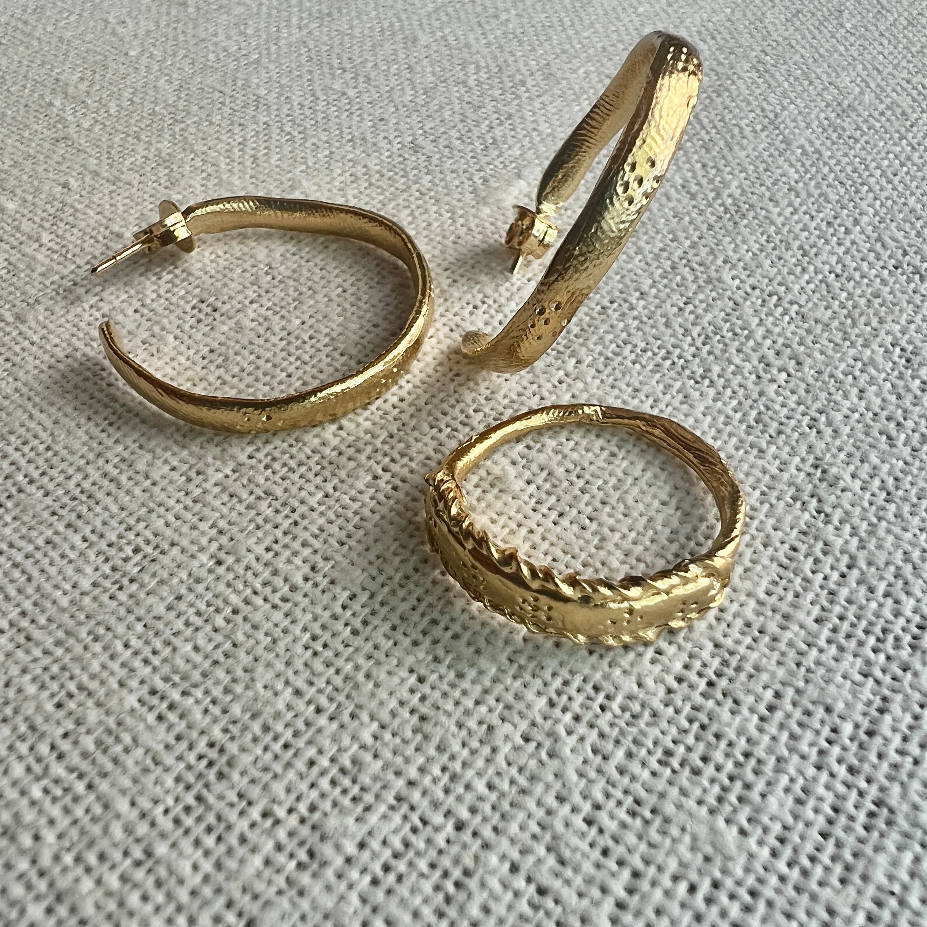 One of her unique approaches lies in using brass, which she lovingly bathes in 18kt gold, resurrecting the sacred metal to reclaim the tradition of her roots. This fusion of materials results in a mesmerizing collection that captures the essence of both the past and the present, forging a new path for contemporary jewelry enthusiasts.