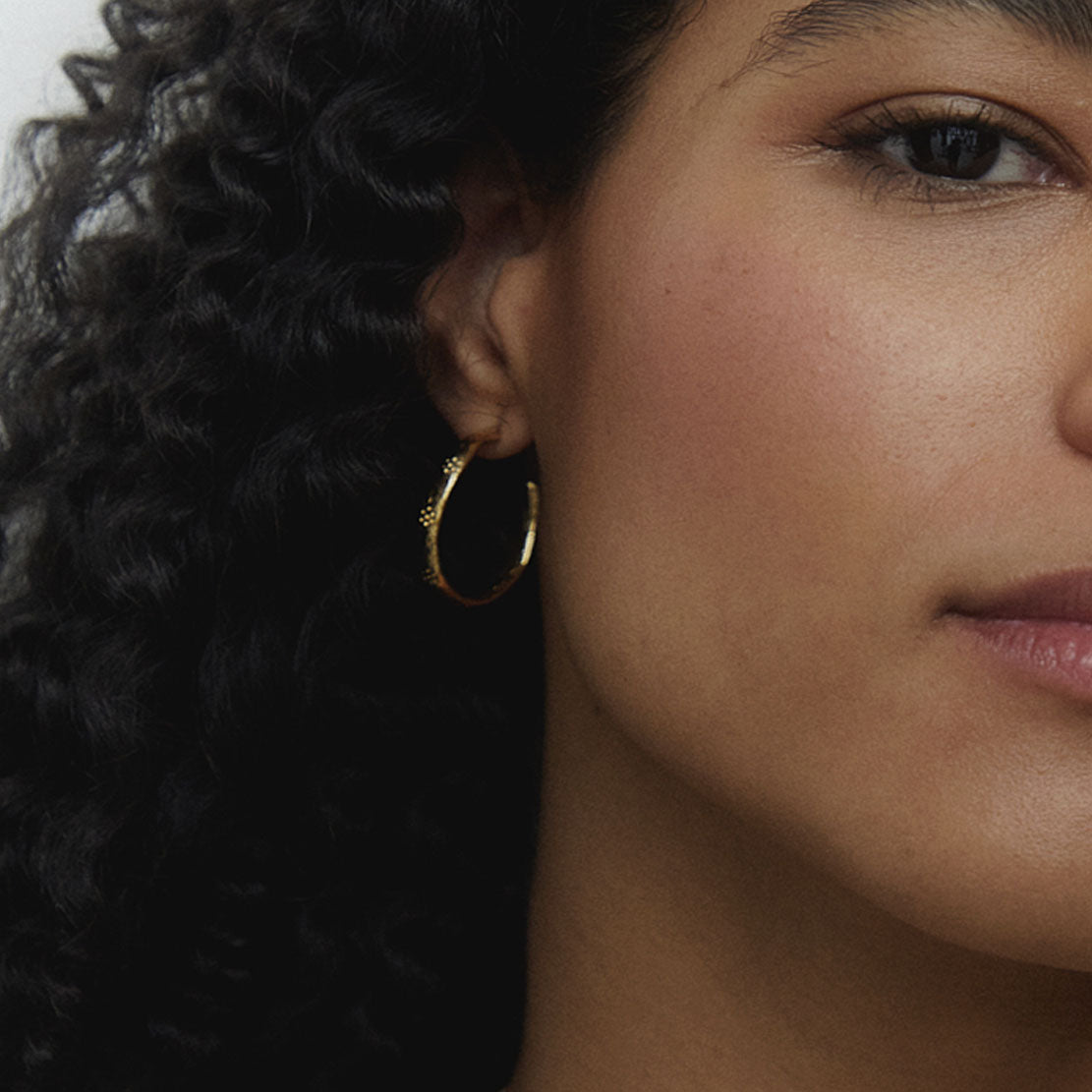 From her workshop in Barcelona, Cristina personally oversees every stage of production, embracing local craftsmanship to ensure uncompromising quality and attention to detail. She meticulously hand-models each piece in wax before casting them in 18kt gold, silver, or brass.