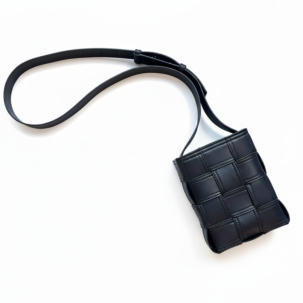 Intrecciato Pouch w/ strap, Black