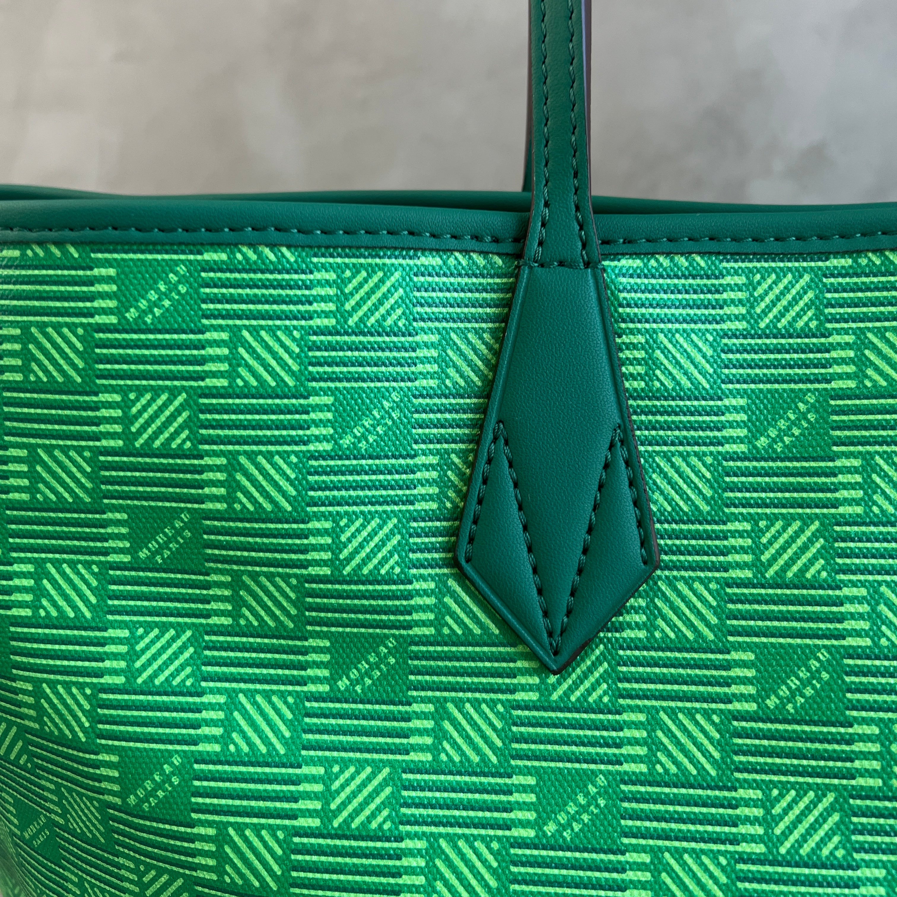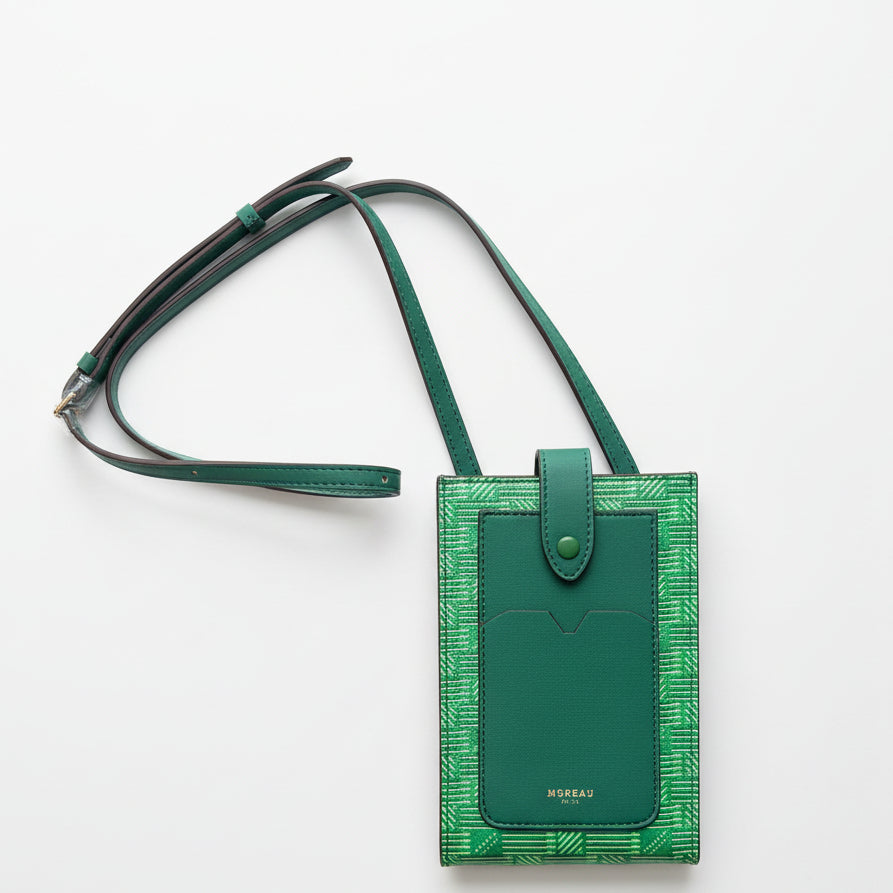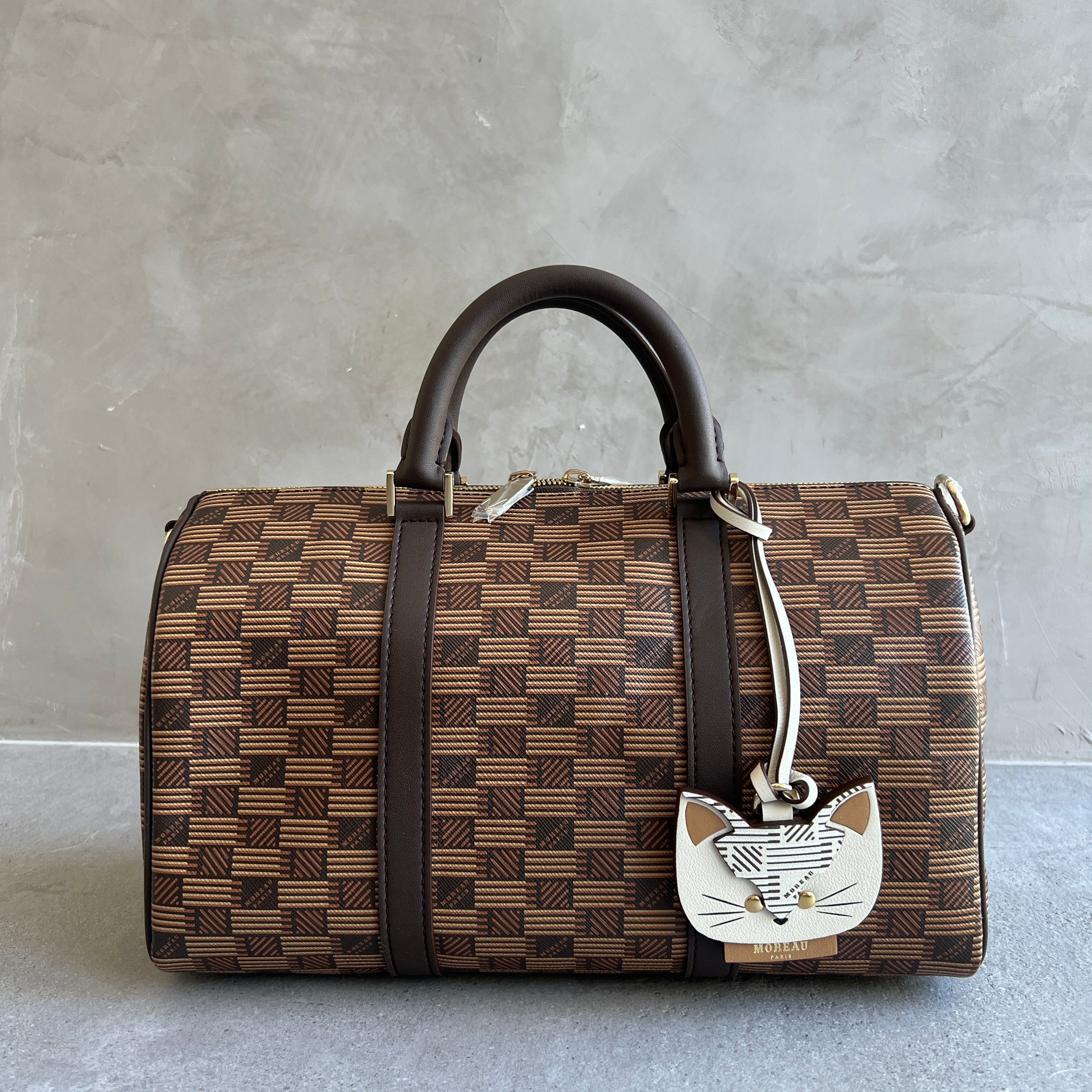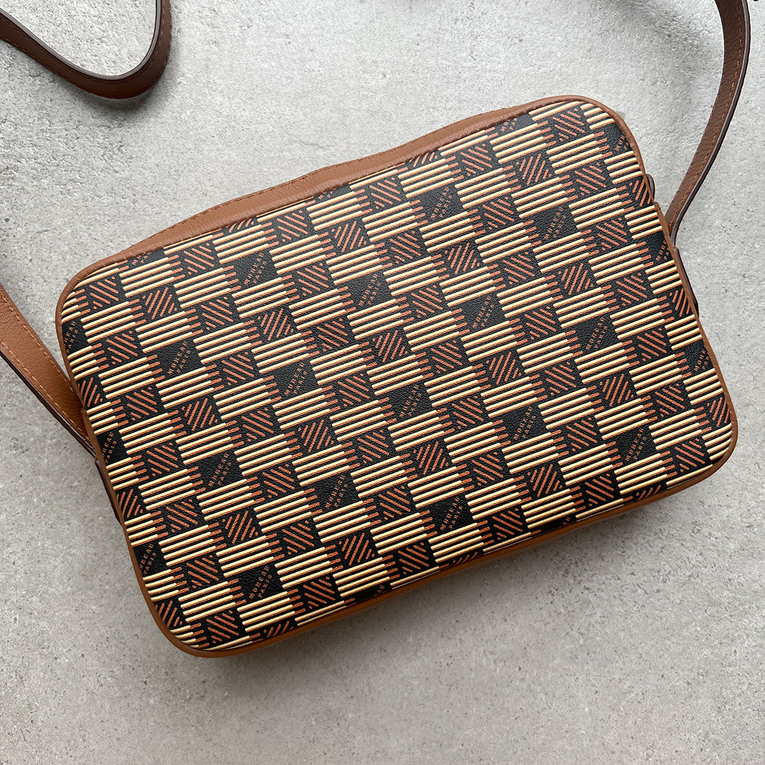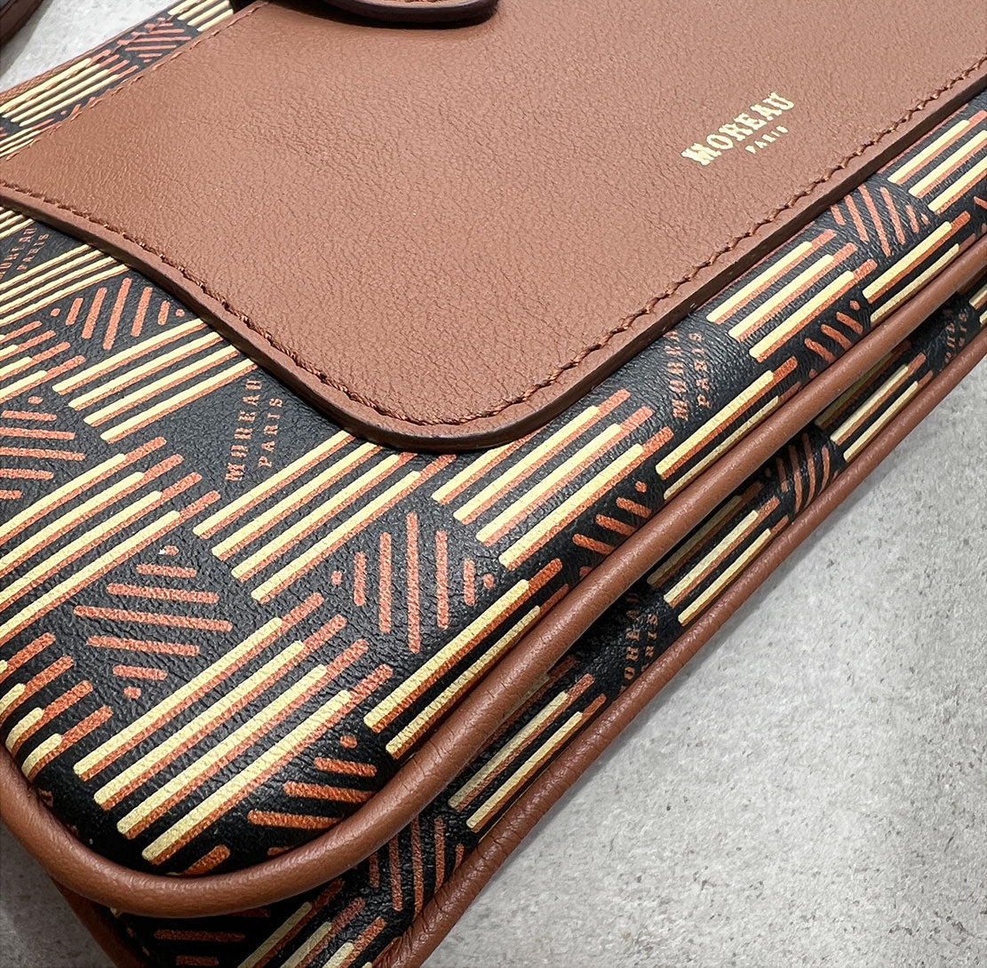 The iconic pattern of Maison Moreau is inspired by the intertwining of wicker stems, which formed the structure of different travel goods in the late 19th century. This unique signature print is reimagined on calf leather with a traditional printing technique that uses a semi-manual paint application, creating vibrant and deep colours.