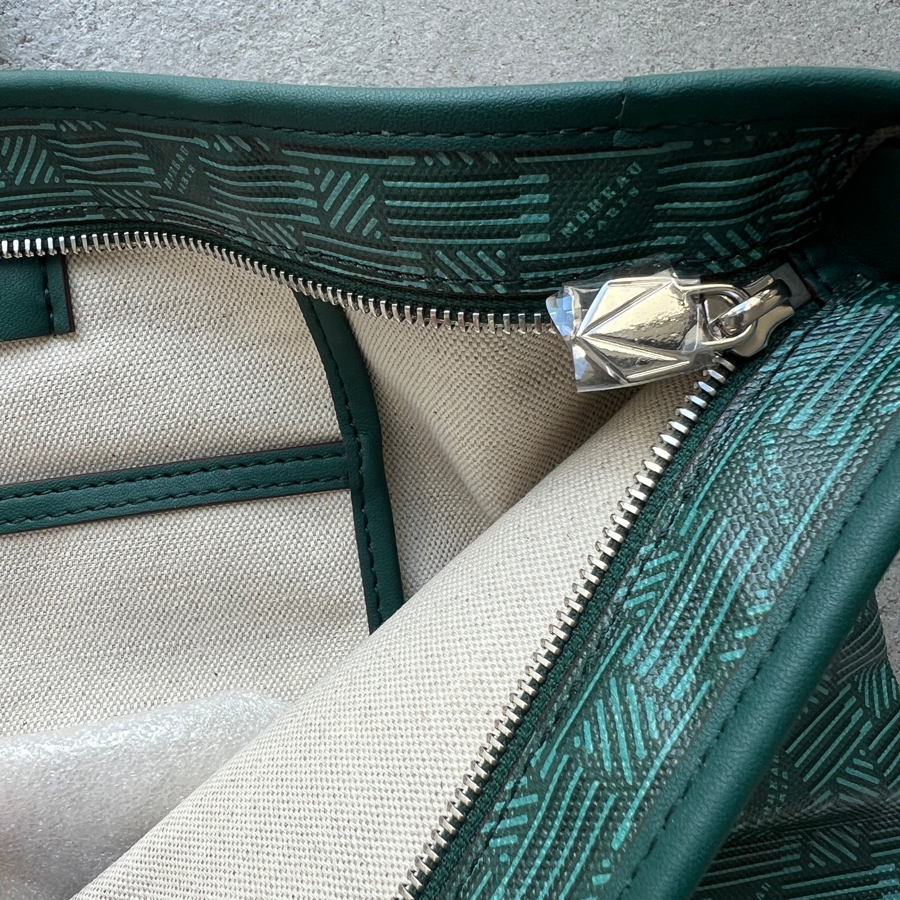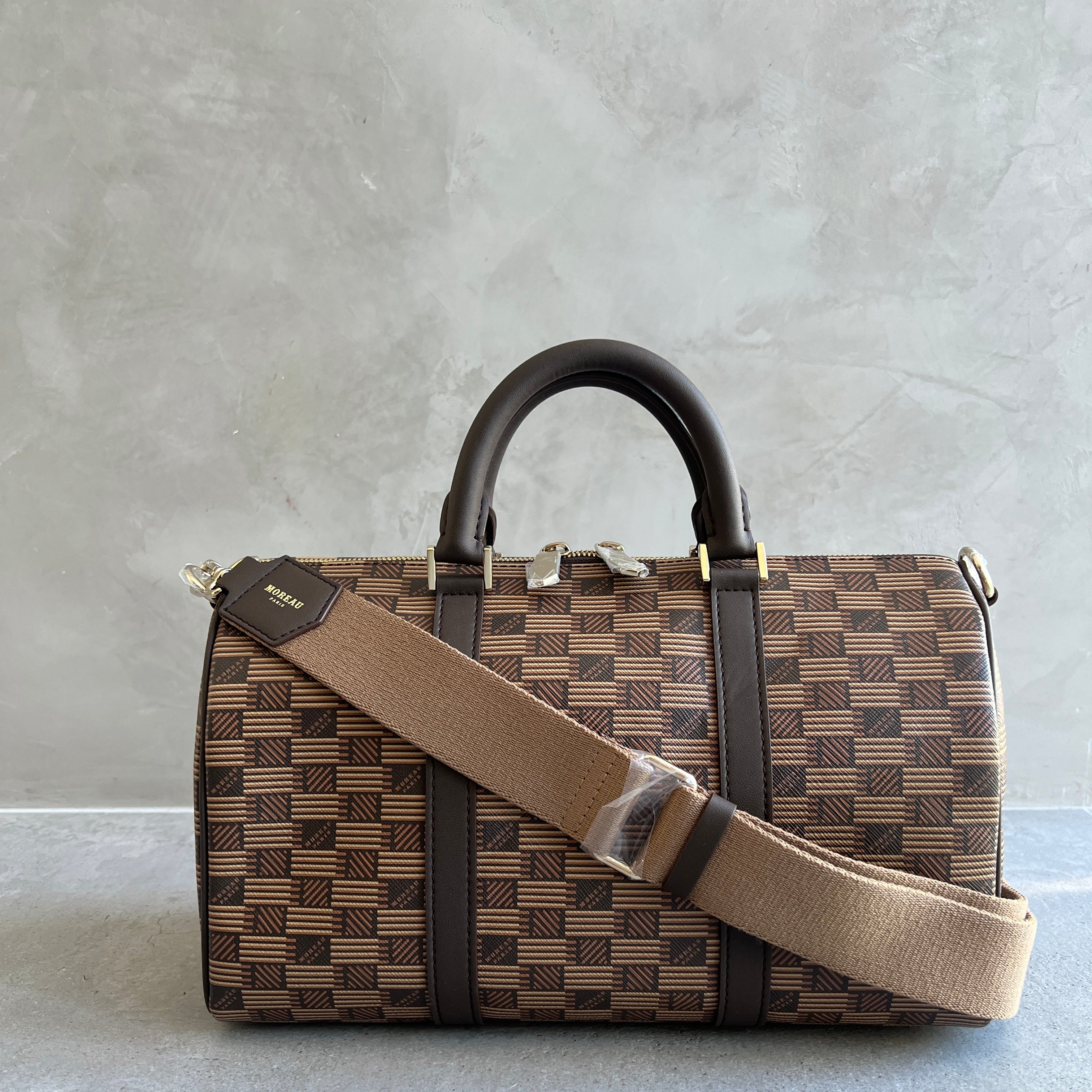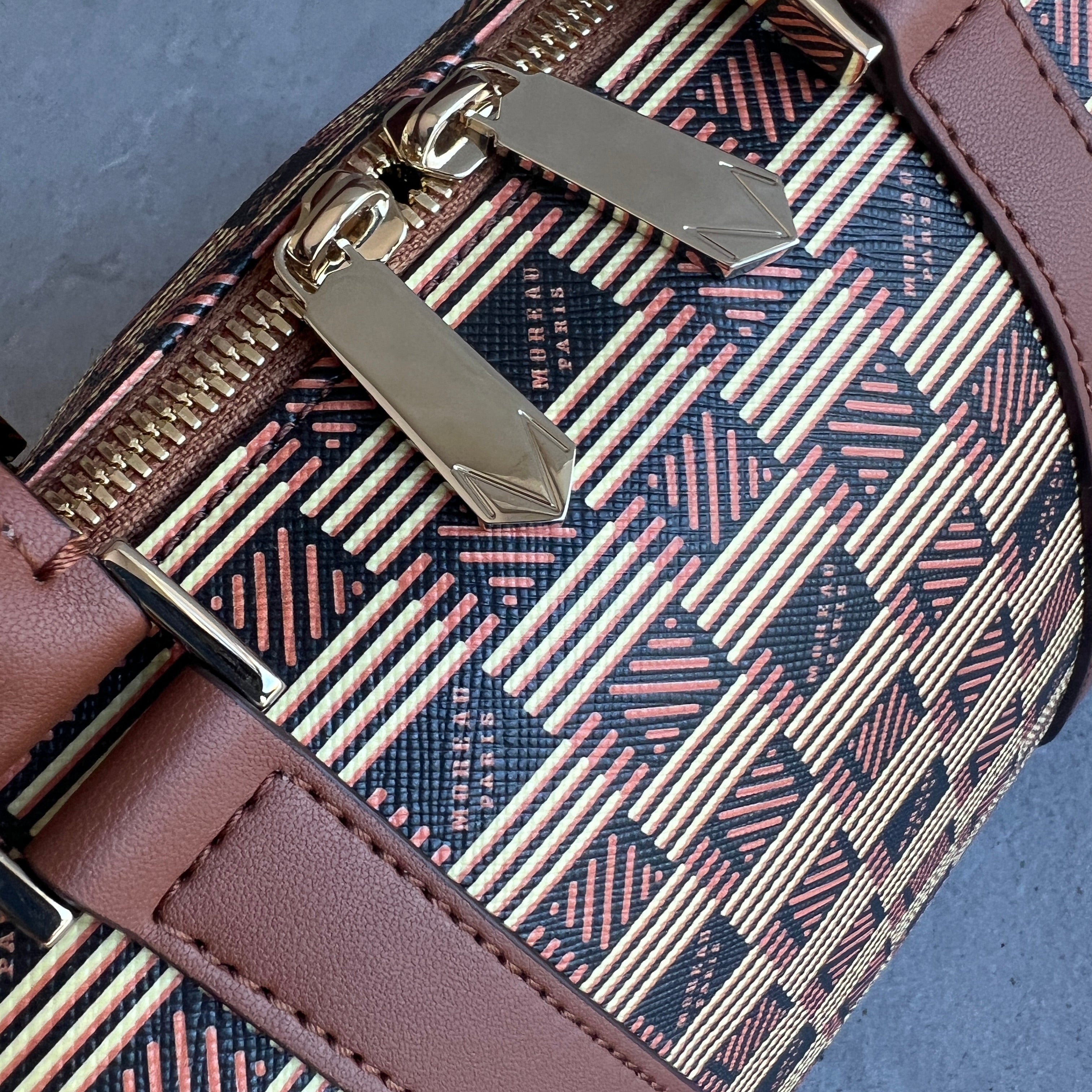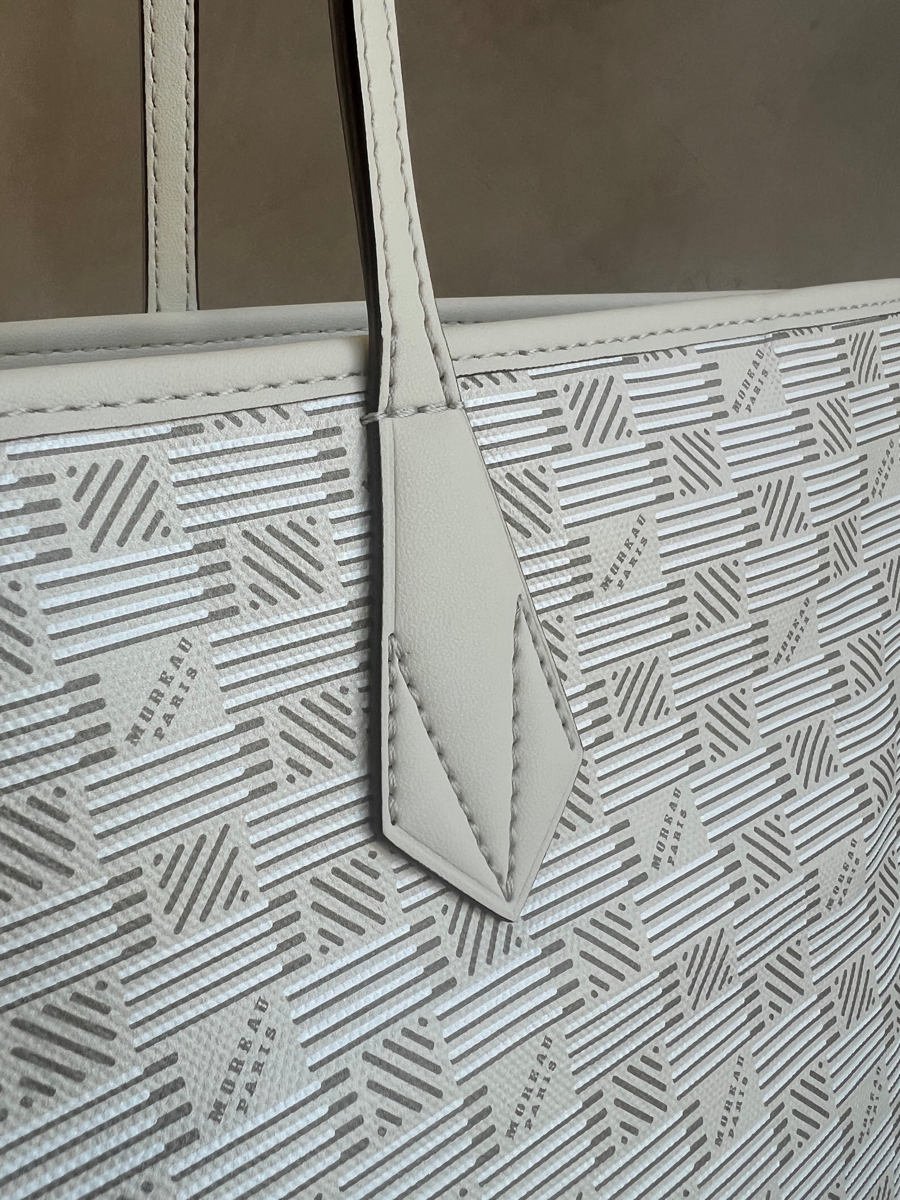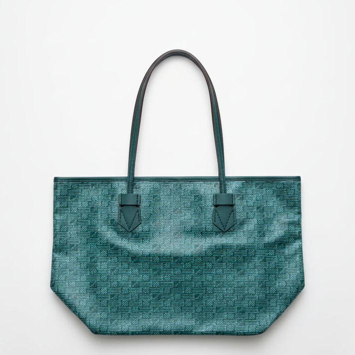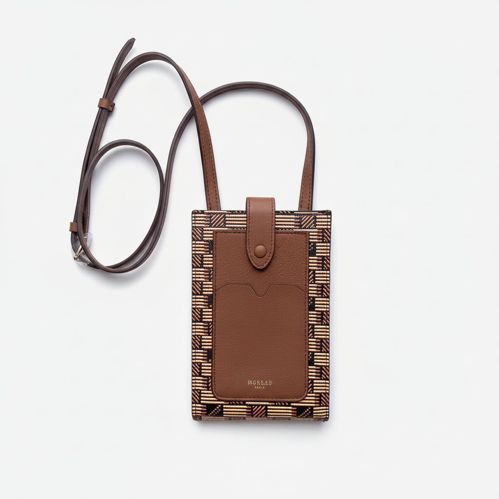 The iconic pattern of Maison Moreau is inspired by the intertwining of wicker stems, which formed the structure of different travel goods in the late 19th century. This unique signature print is reimagined on calf leather with a traditional printing technique that uses a semi-manual paint application, creating vibrant and deep colours.