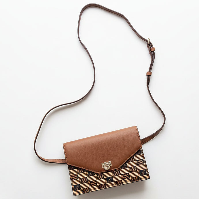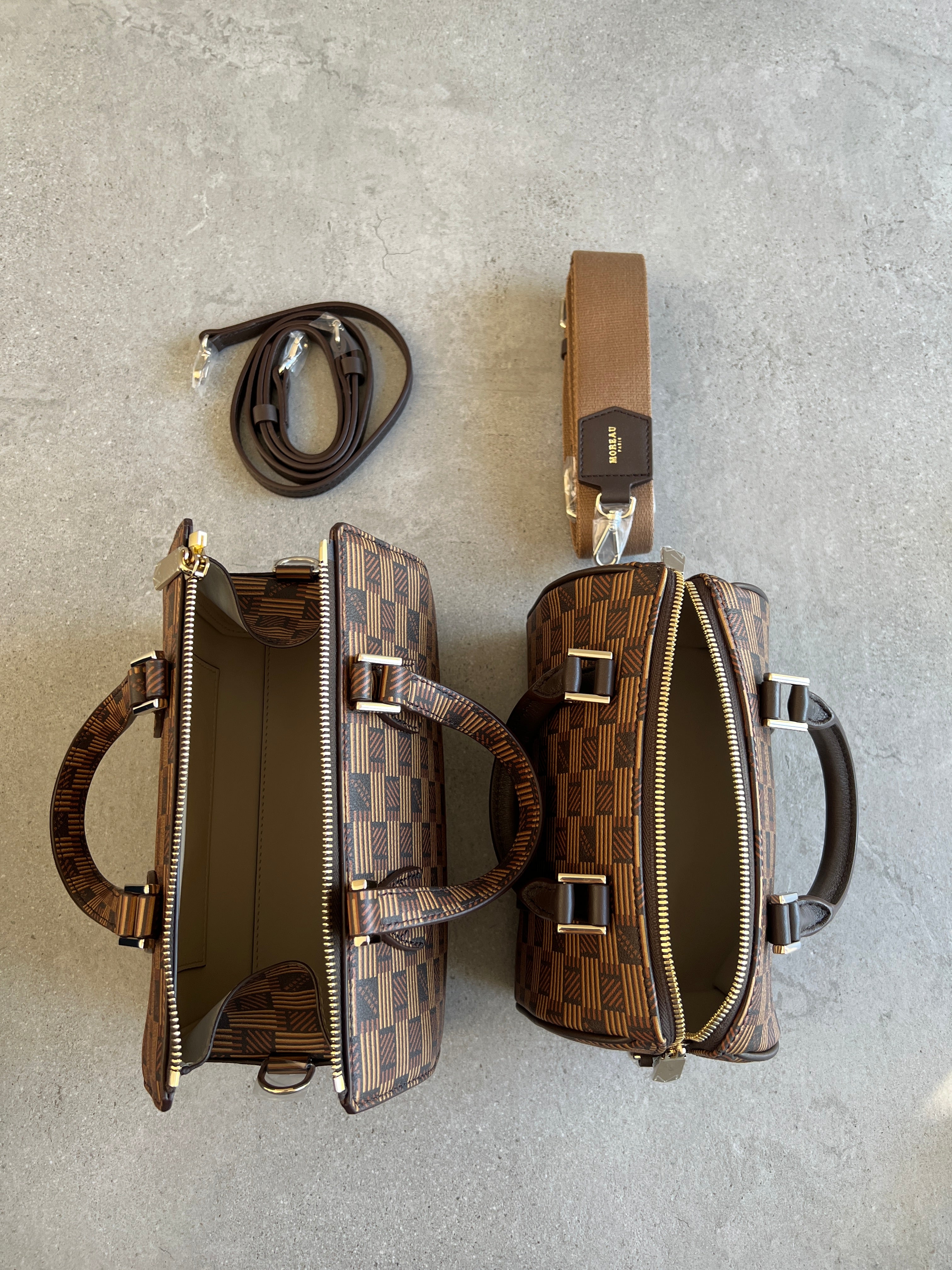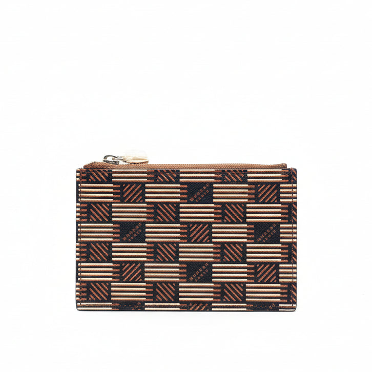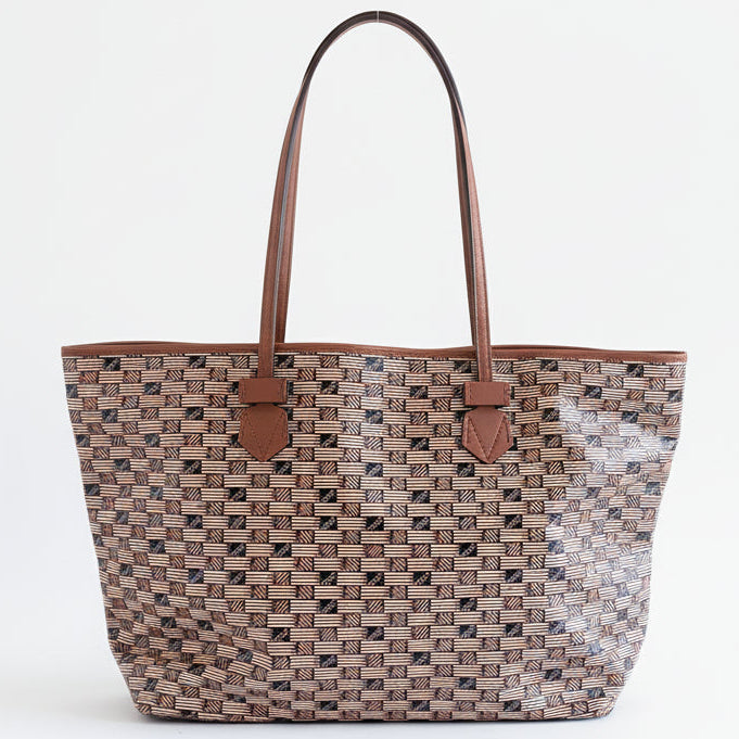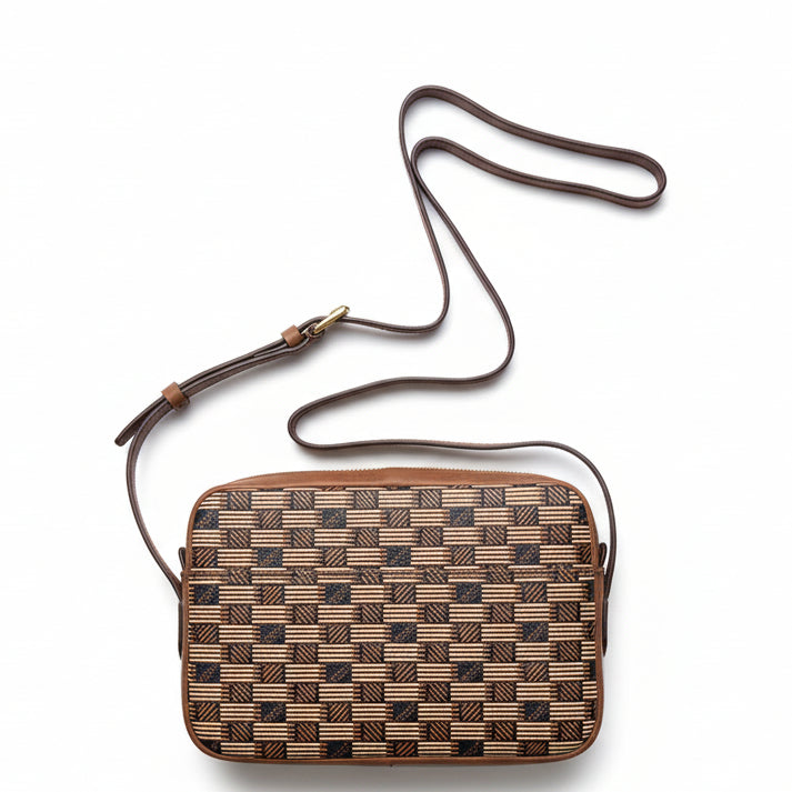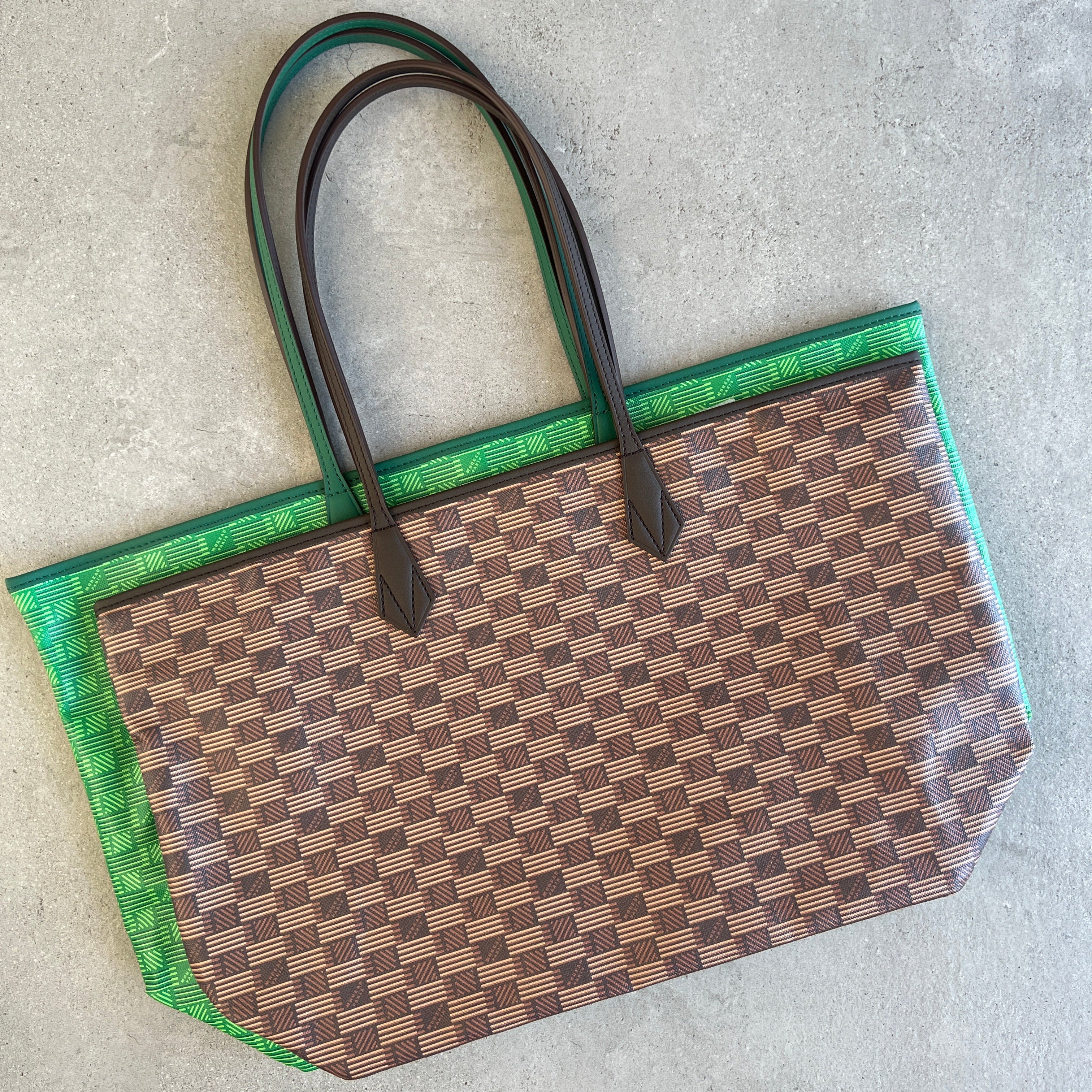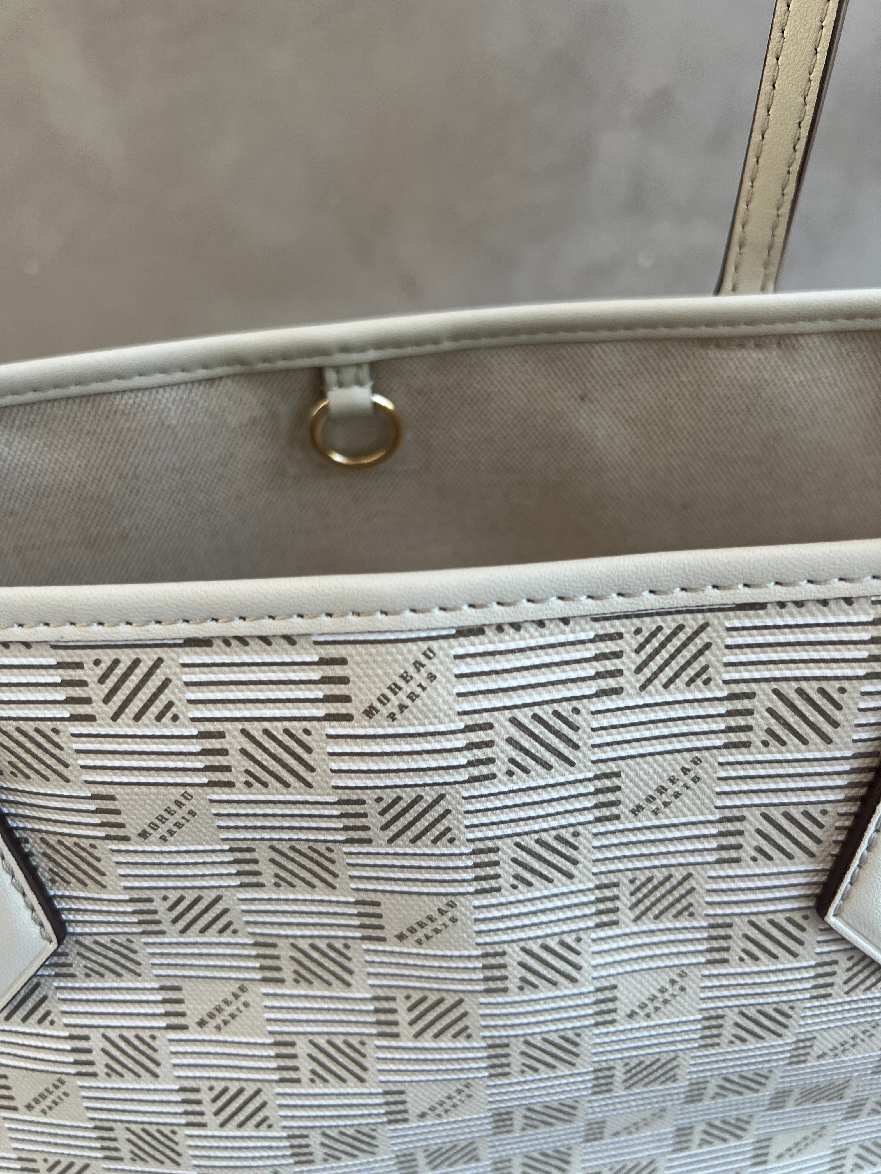 The iconic pattern of Maison Moreau is inspired by the intertwining of wicker stems, which formed the structure of different travel goods in the late 19th century. This unique signature print is reimagined on calf leather with a traditional printing technique that uses a semi-manual paint application, creating vibrant and deep colours.