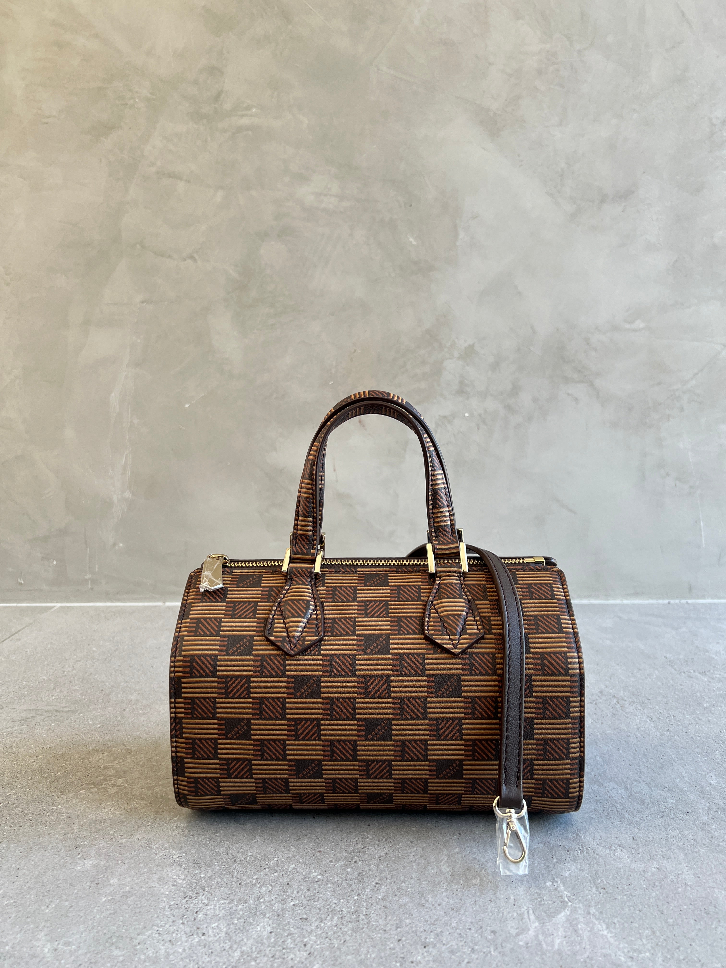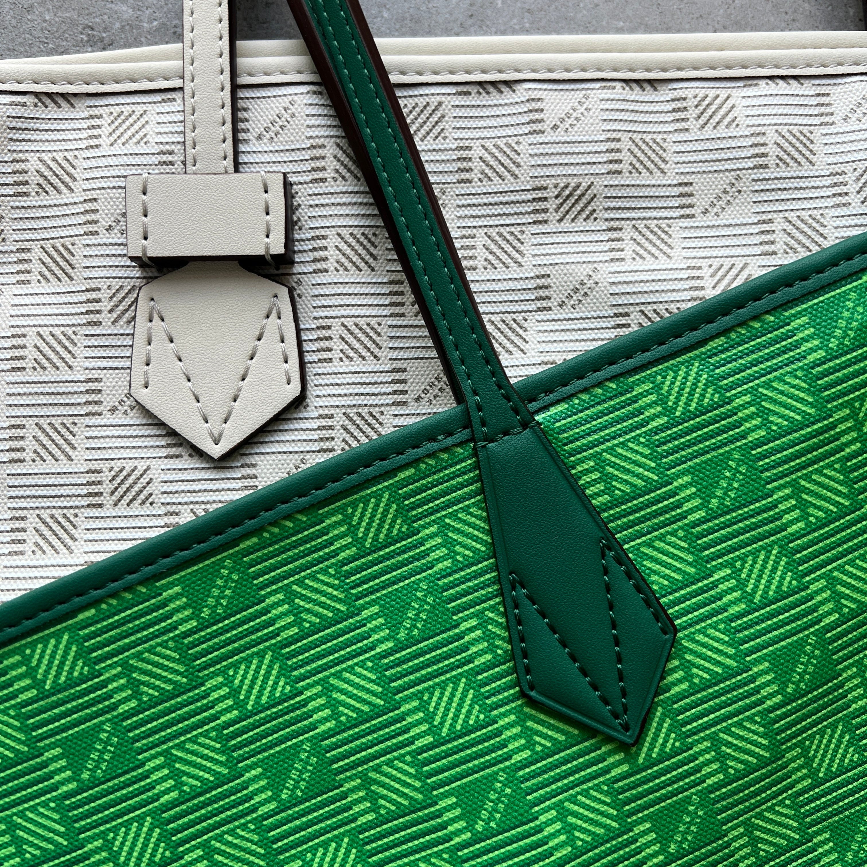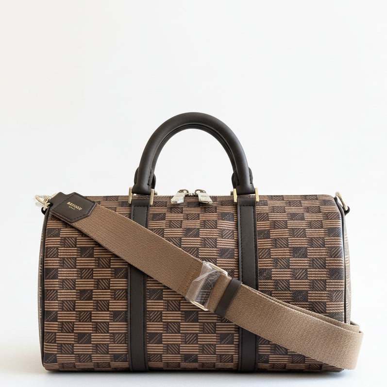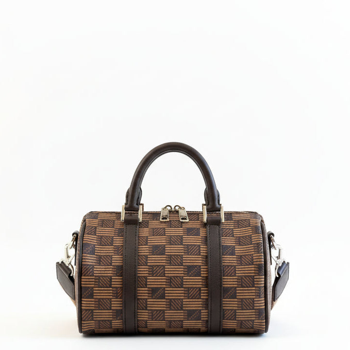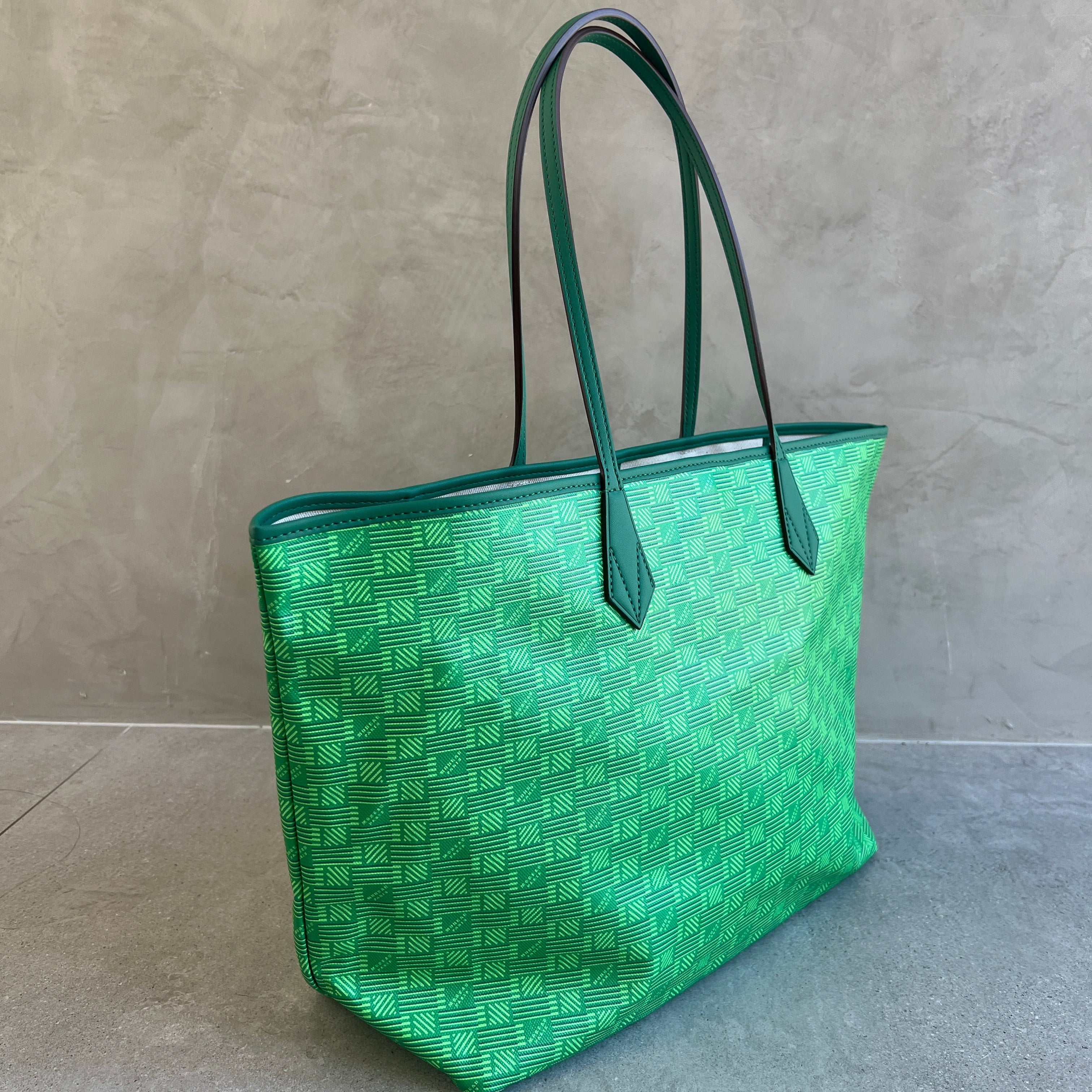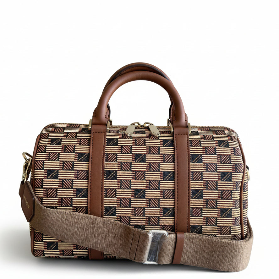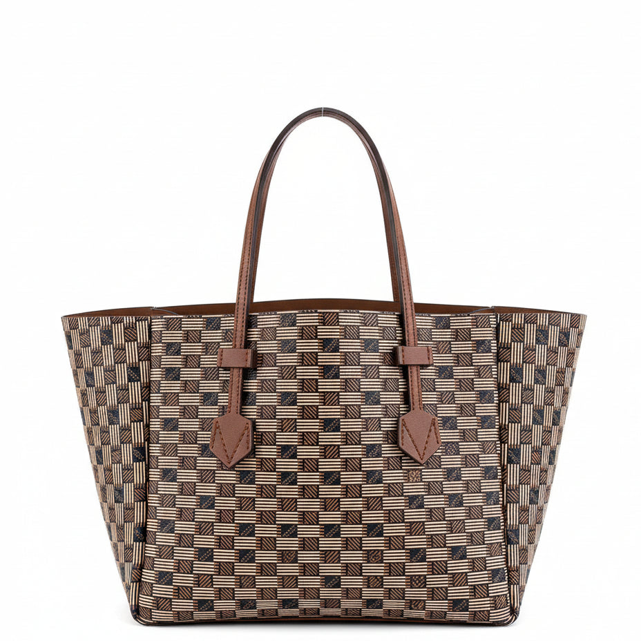 The iconic pattern of Maison Moreau is inspired by the intertwining of wicker stems, which formed the structure of different travel goods in the late 19th century. This unique signature print is reimagined on calf leather with a traditional printing technique that uses a semi-manual paint application, creating vibrant and deep colours.