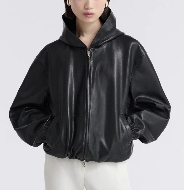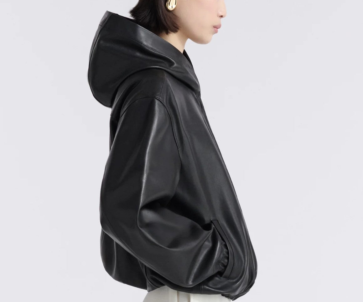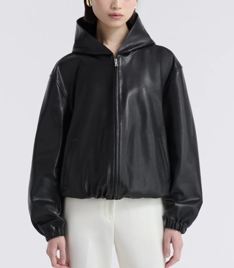 Leo Supple Leather Hoodie, Black