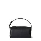 Top-handle bag in natural milled grained calfskin leather with softly rounded edges, leather piping and adjustable slim leather strap.