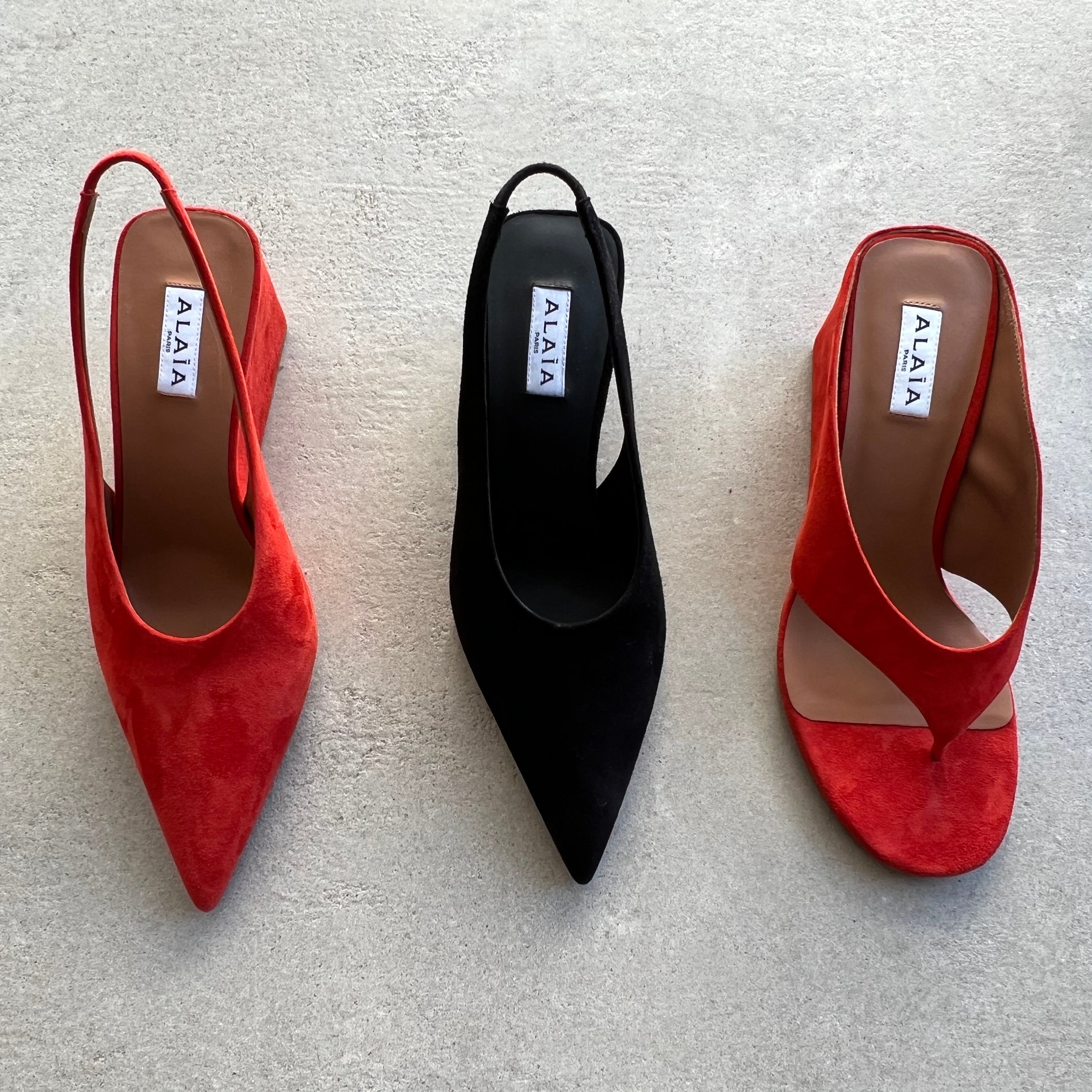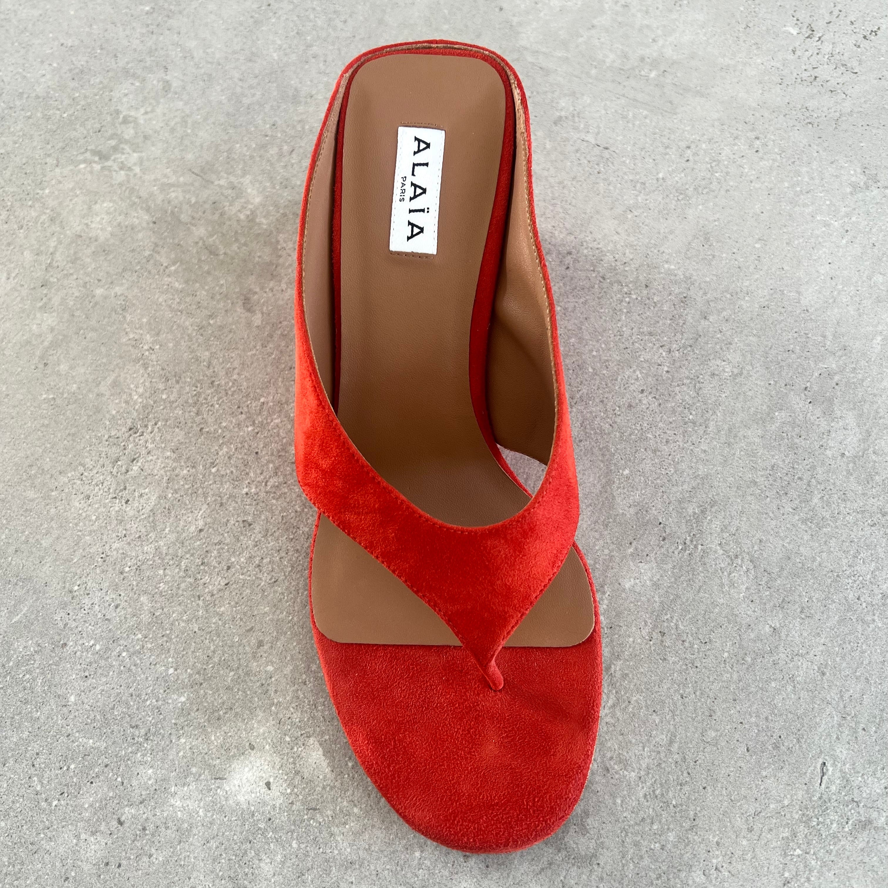 Iconic wedge thong mules with cubic heel