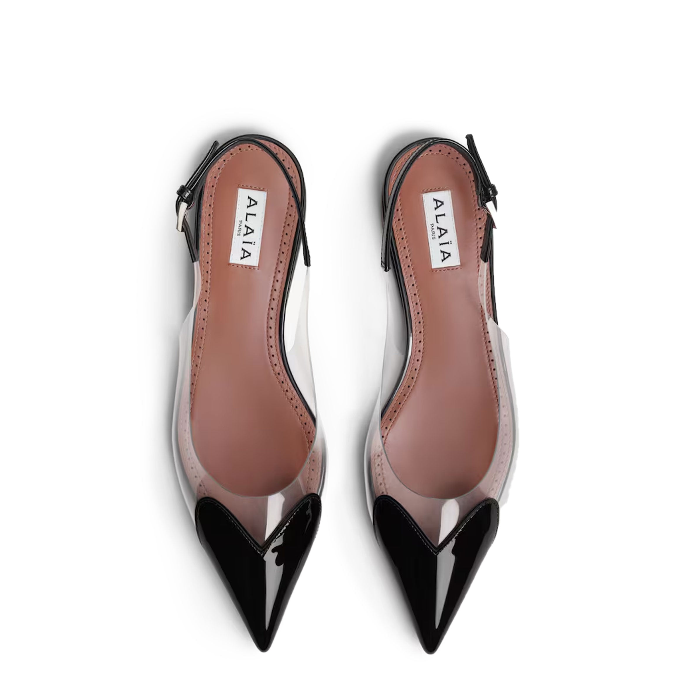 Introducing Alaïa's heart slingback – where style meets romance. These flats feature a captivating heart cut at the front, adding a touch of love to your every step. Crafted with Alaïa's signature attention to detail and quality. Slip into sophistication and express your passion for fashion with Alaïa's heart slingbacks.