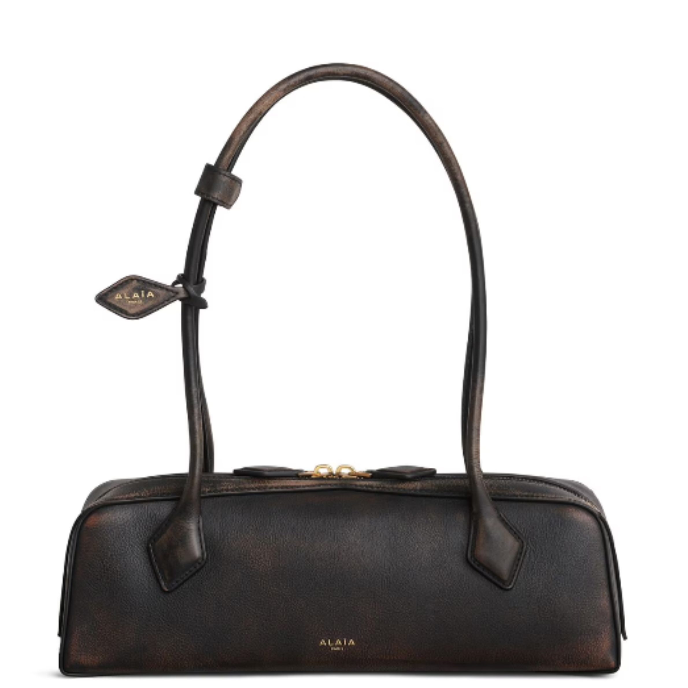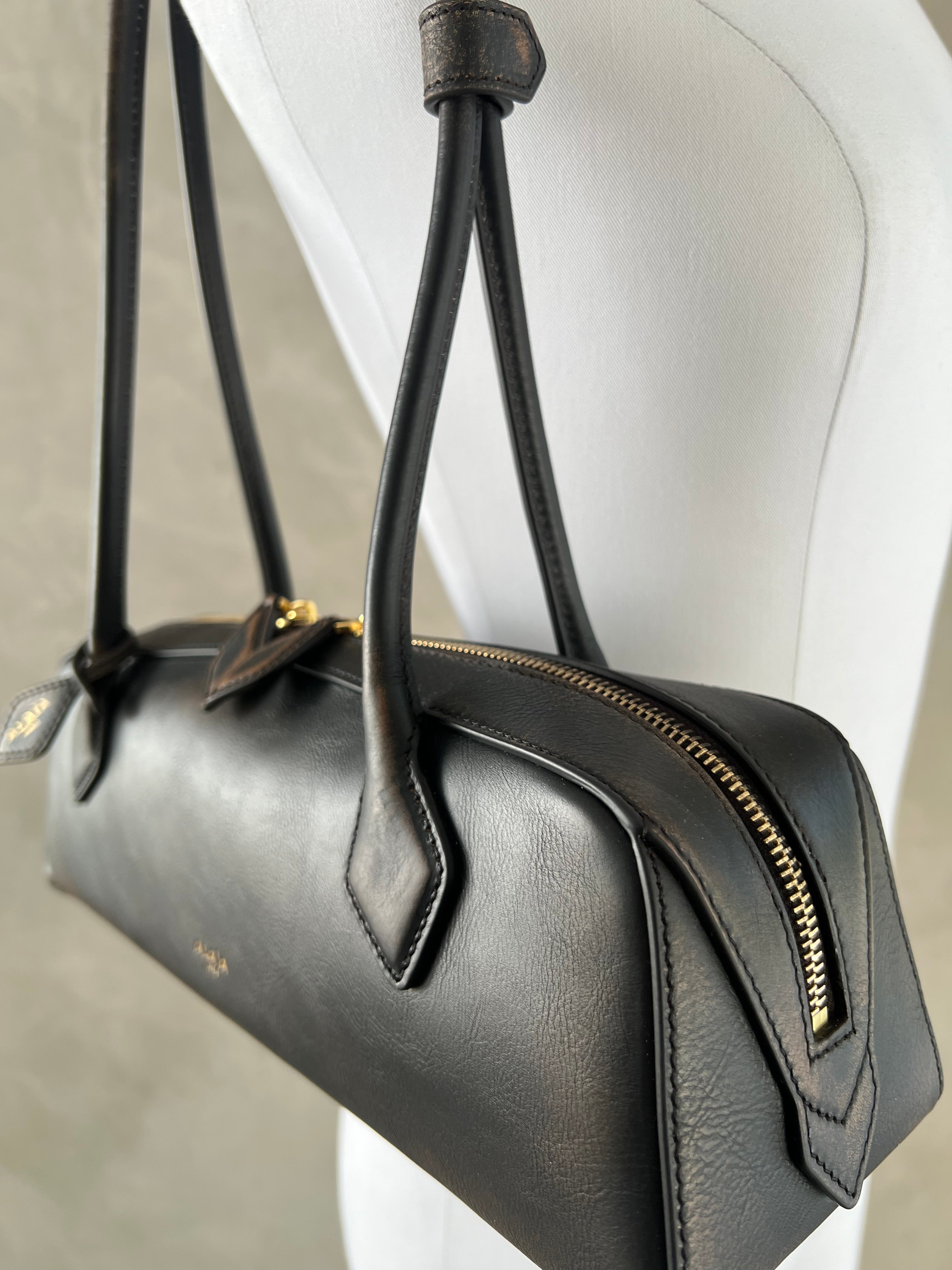 Shoulder bag with iconic elongated shape