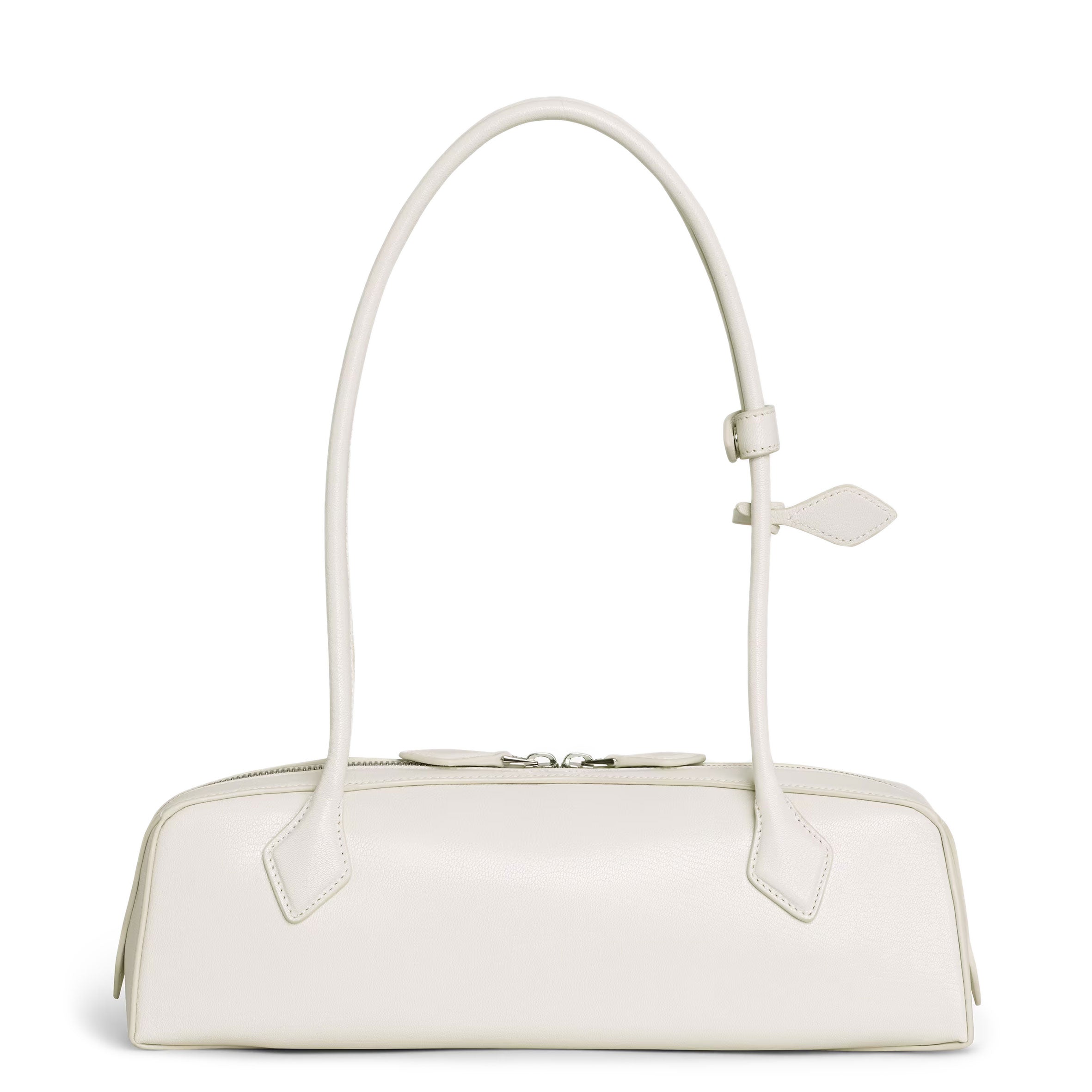 'Le Teckel' (or "Dachshund" in French) has an elongated body made from structured leather with luggage-inspired top handles and a moniker-stamped hangtag.