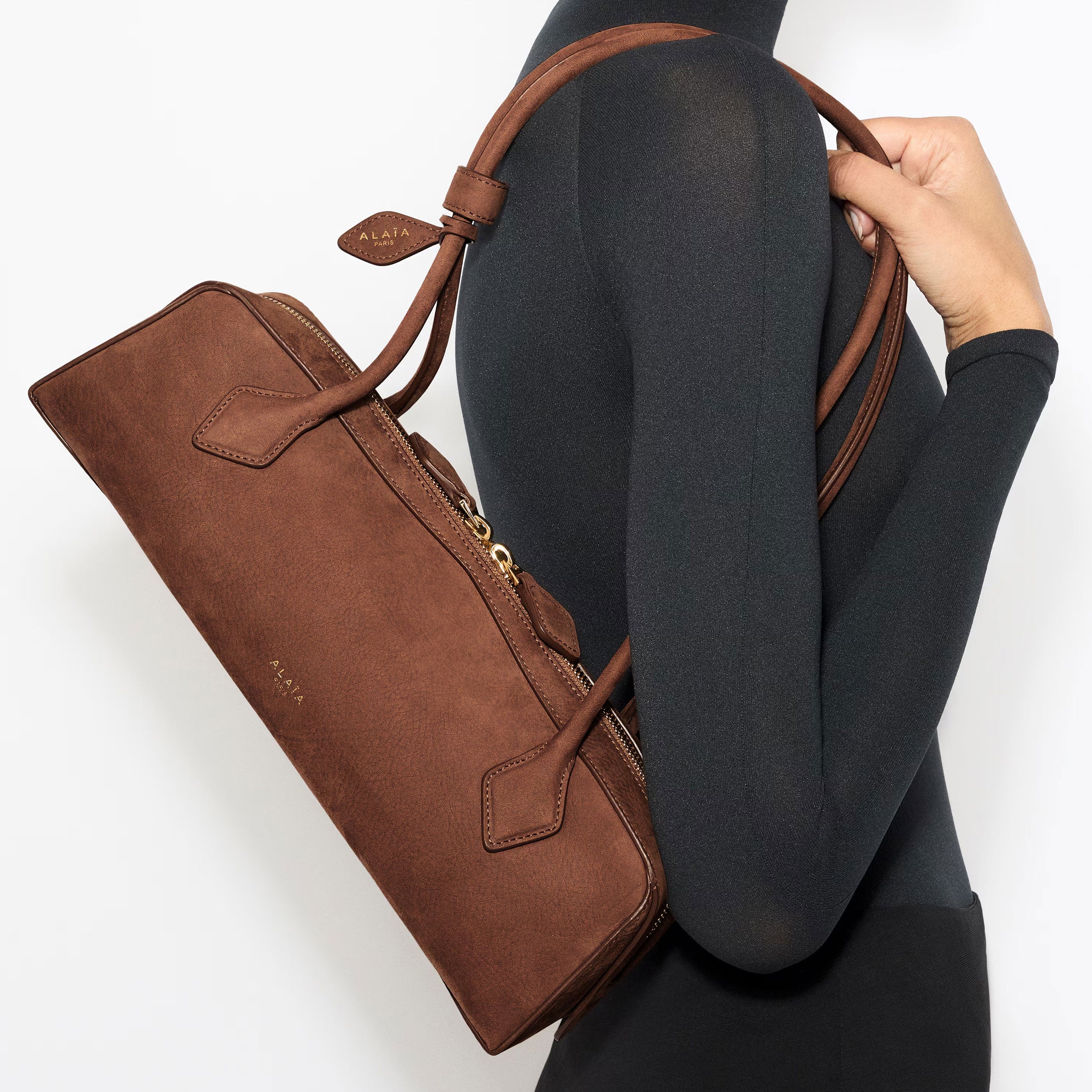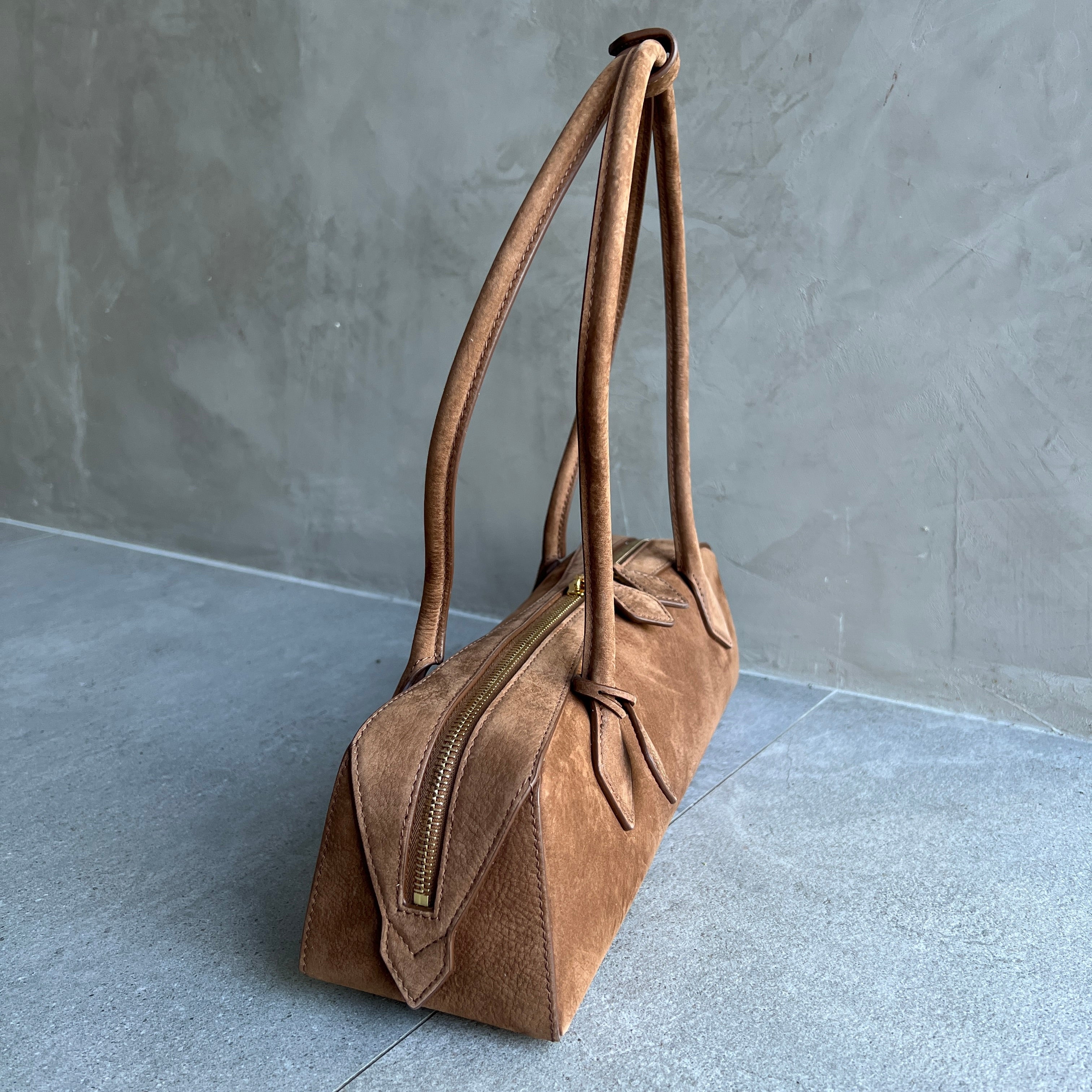 'Le Teckel' (or "Dachshund" in French) has an elongated body made from structured leather with luggage-inspired top handles and a moniker-stamped hangtag.