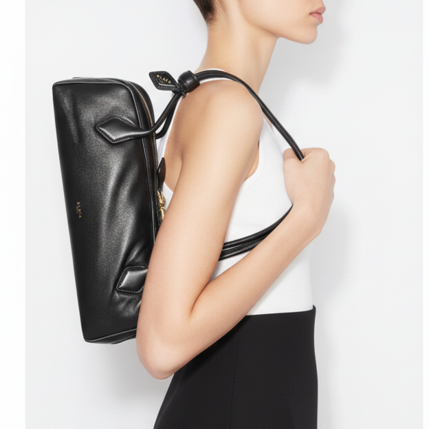 'Le Teckel' (or "Dachshund" in French) has an elongated body made from structured leather with luggage-inspired top handles and a moniker-stamped hangtag.
