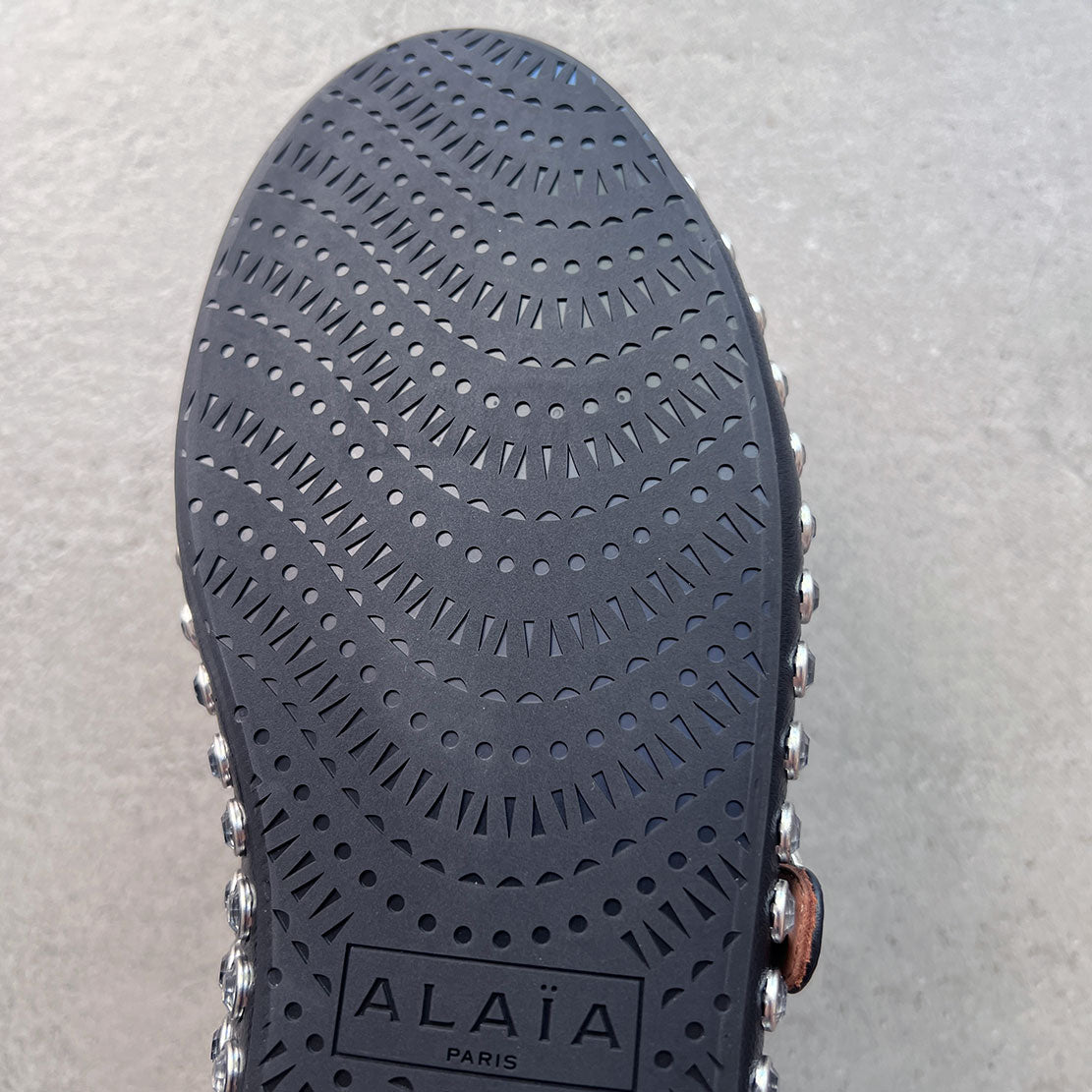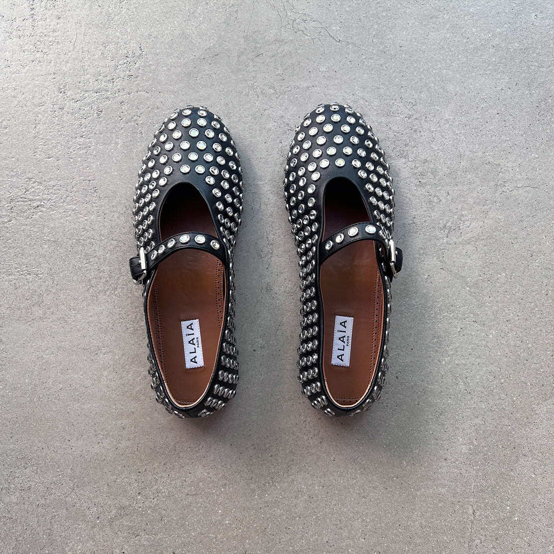 Step into luxury with Alaïa's Ballet Flats inspired by classical Japanese shoes. Featuring a rubber sole, they provide both comfort and durability, making them a perfect choice for any occasion. Elevate your footwear collection with these exquisite ballet flats from Alaïa.