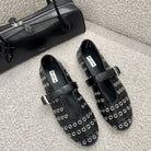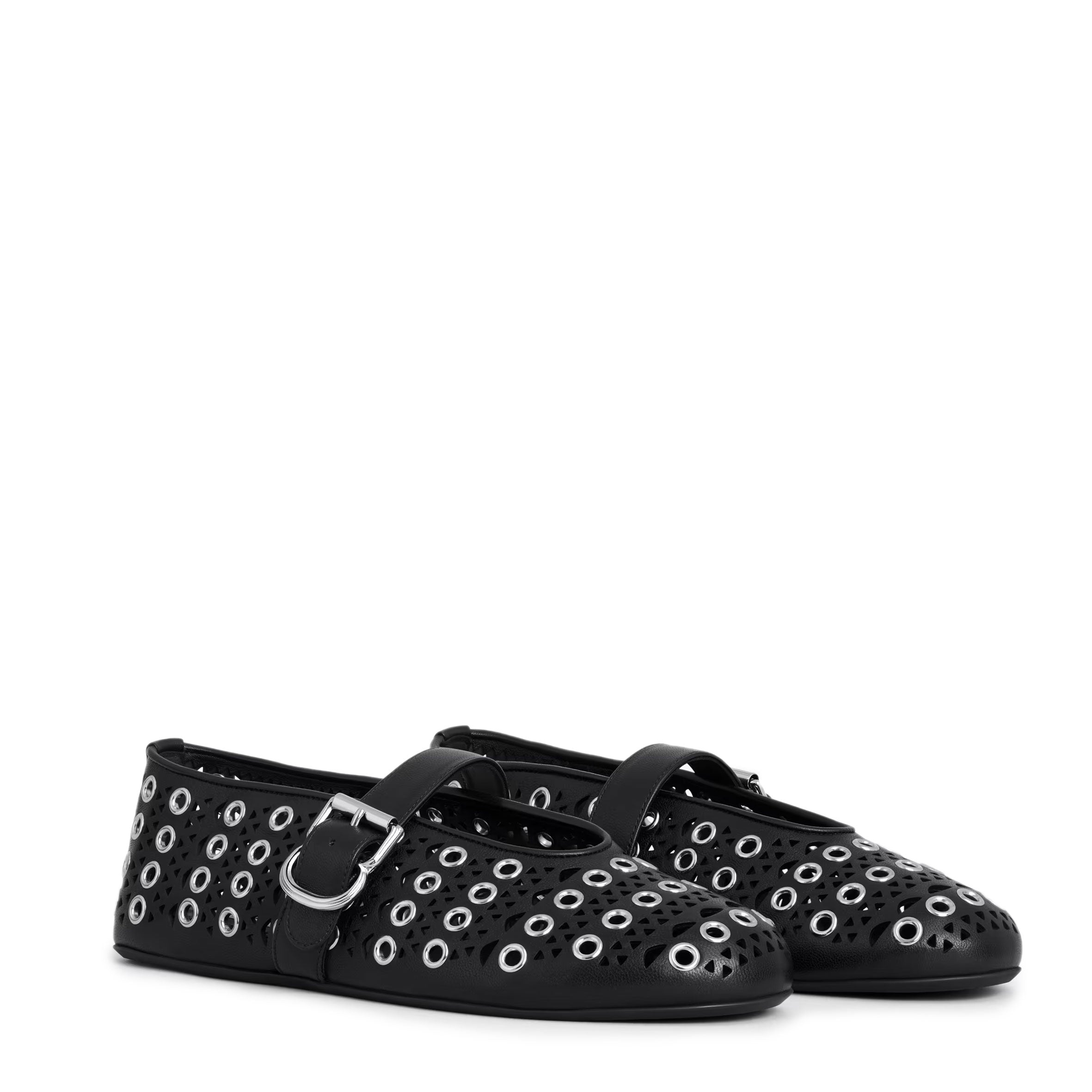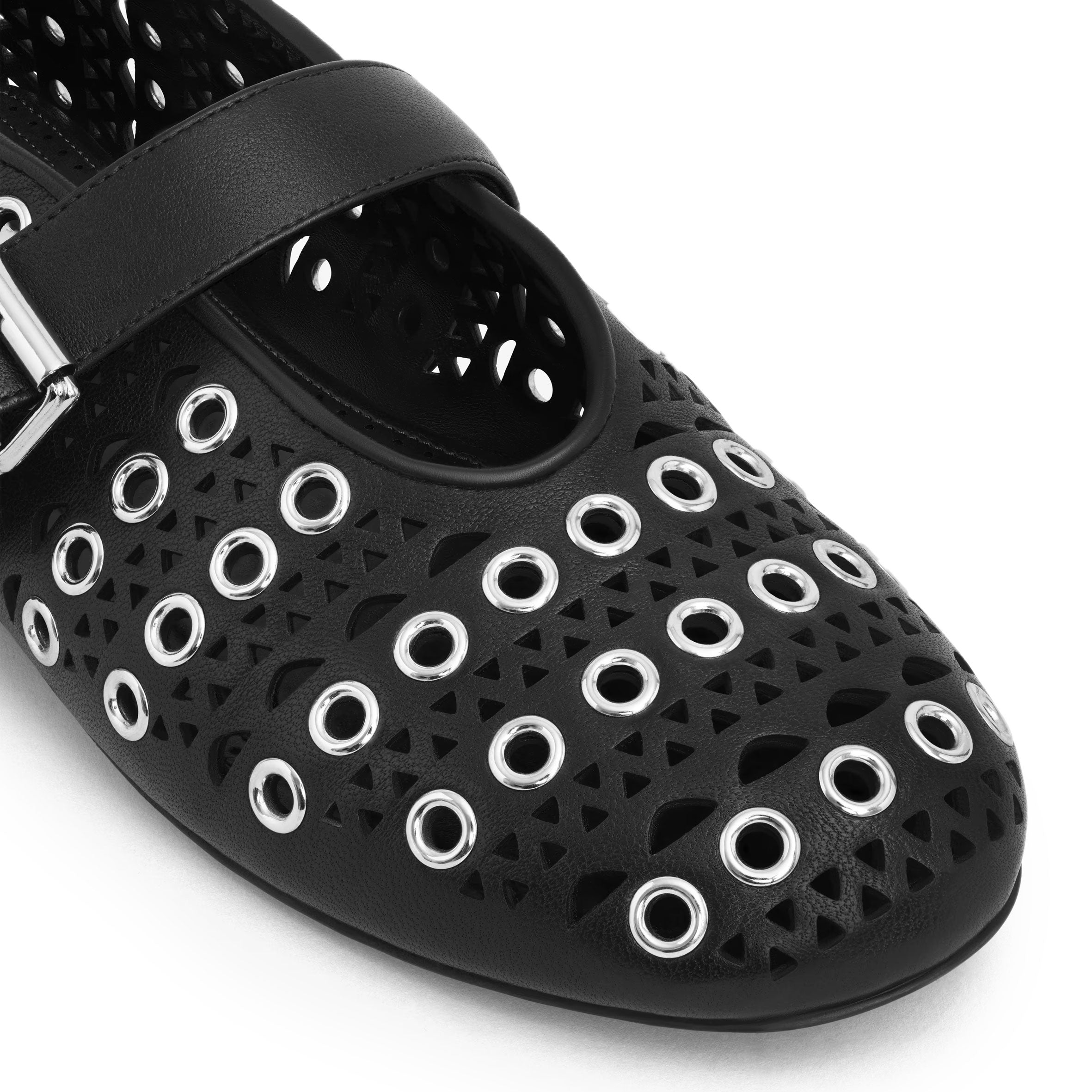 Vienne Laser Cut Eyelet Ballet Flats, Black