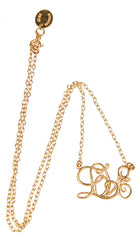 Written in an ornate, scroll script, the 'Love' measures approximately 20mm by 15mm, and sits on a 40cm length chain. 22-karat gold-plated sterling silver with designer-stamped tag. Lobster clasp fastening.