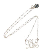 Written in an ornate, scroll script in Sterling silver with designer-stamped tag. Lobster clasp fastening.