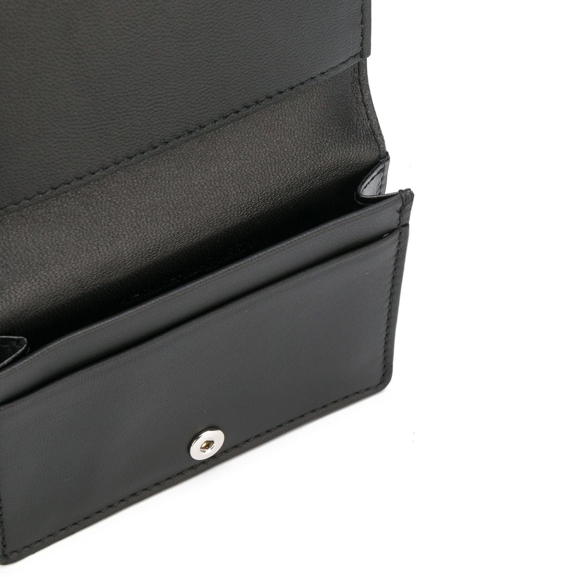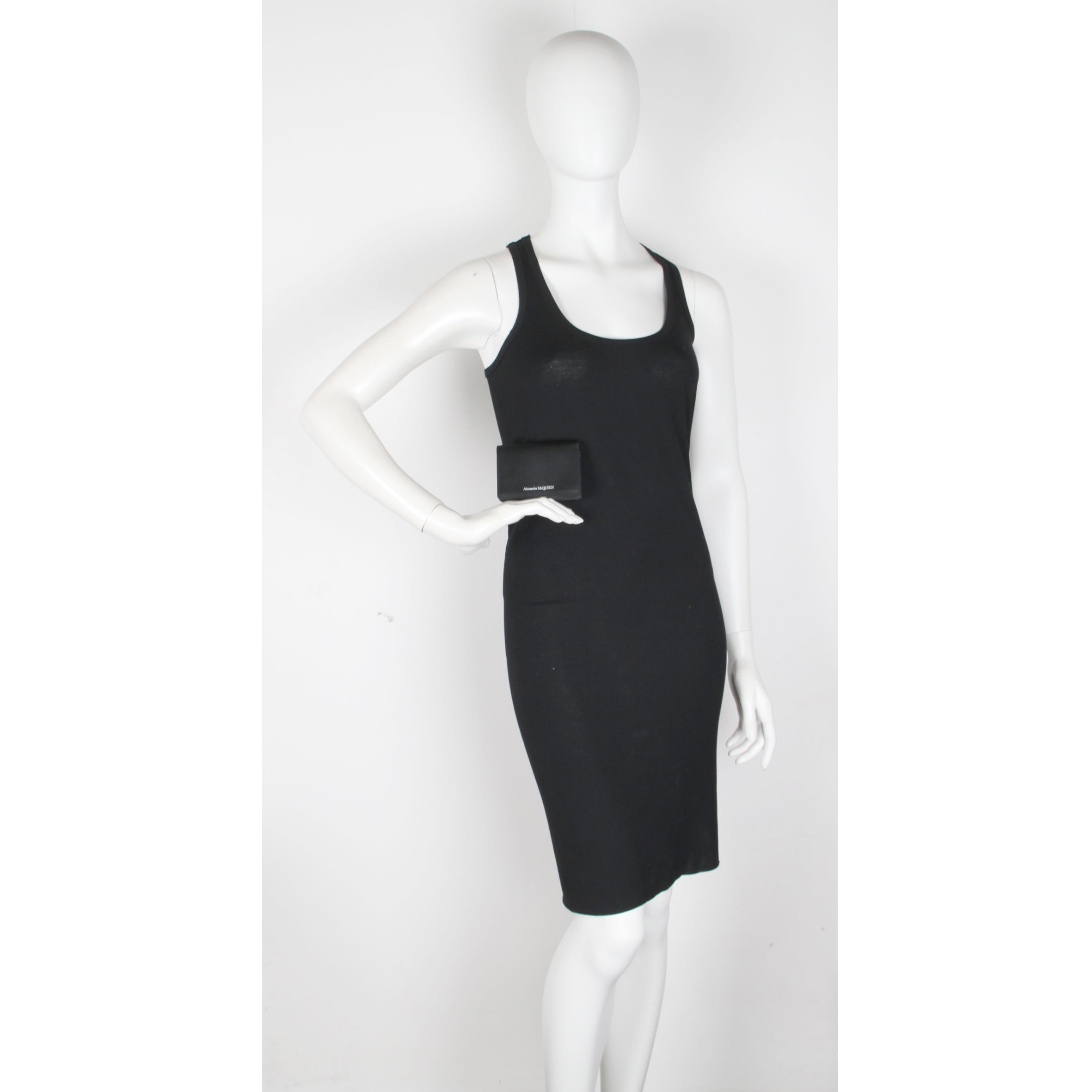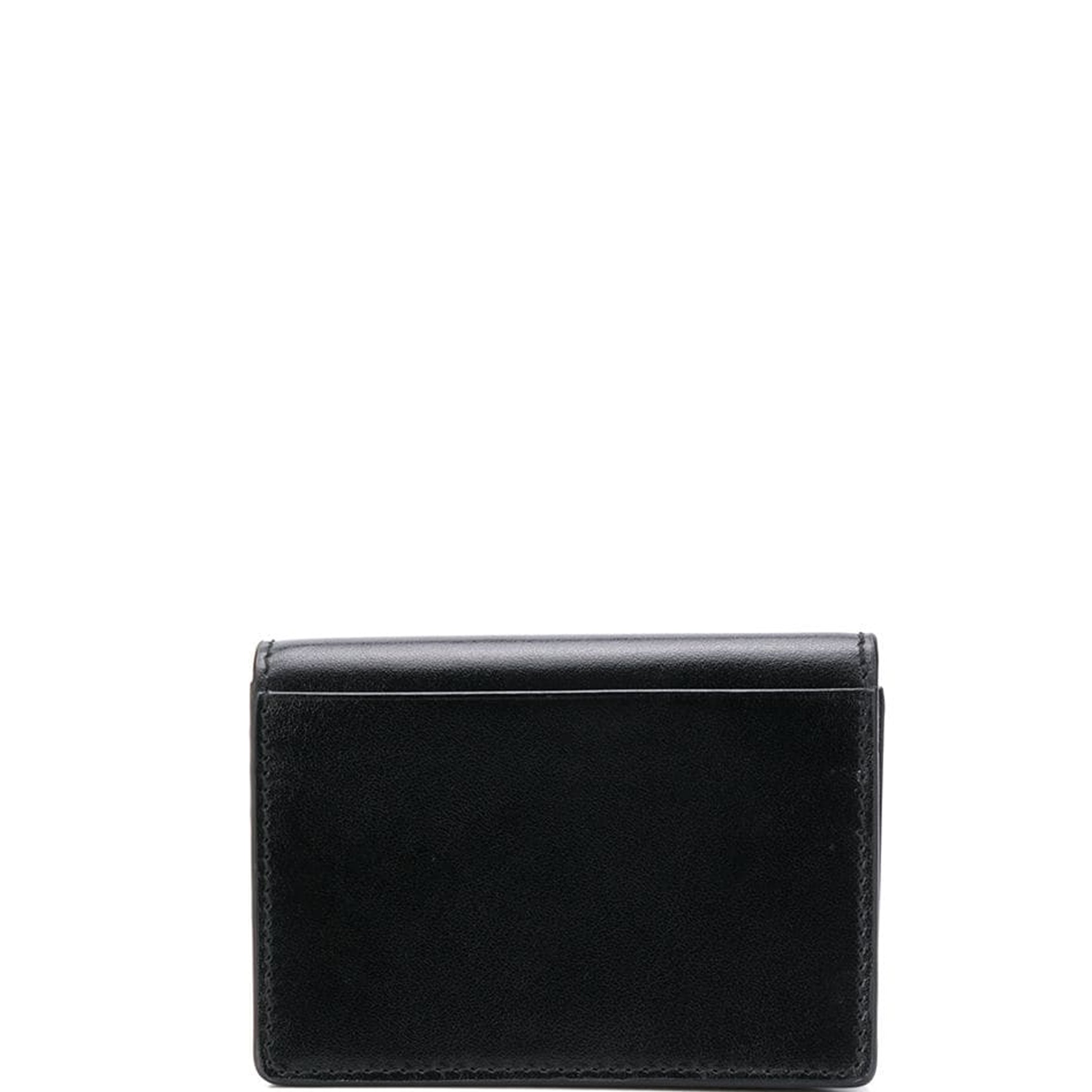 A smooth leather business card holder with one main compartment and a snap closure. Finished with an embossed and printed Alexander McQueen logo.