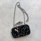 Celestial Box Skull Clutch with Strap, Black/Gold
