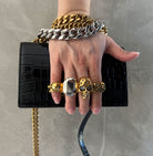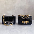 Chain Jewelled Knuckle Satchel Mini, Croc Black