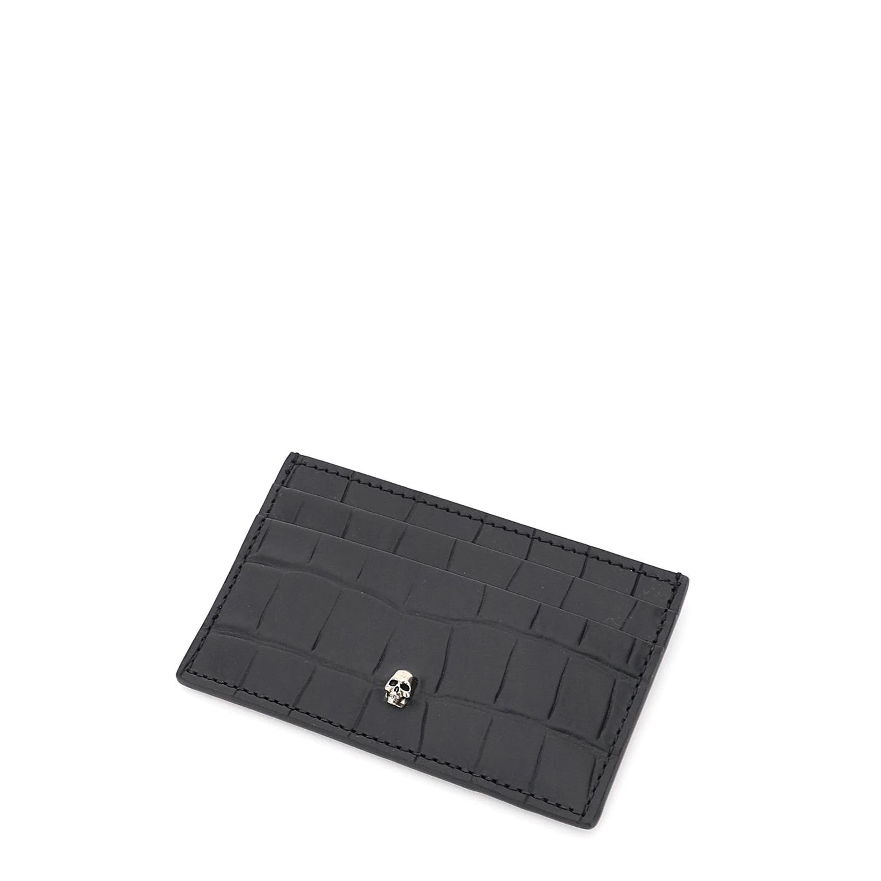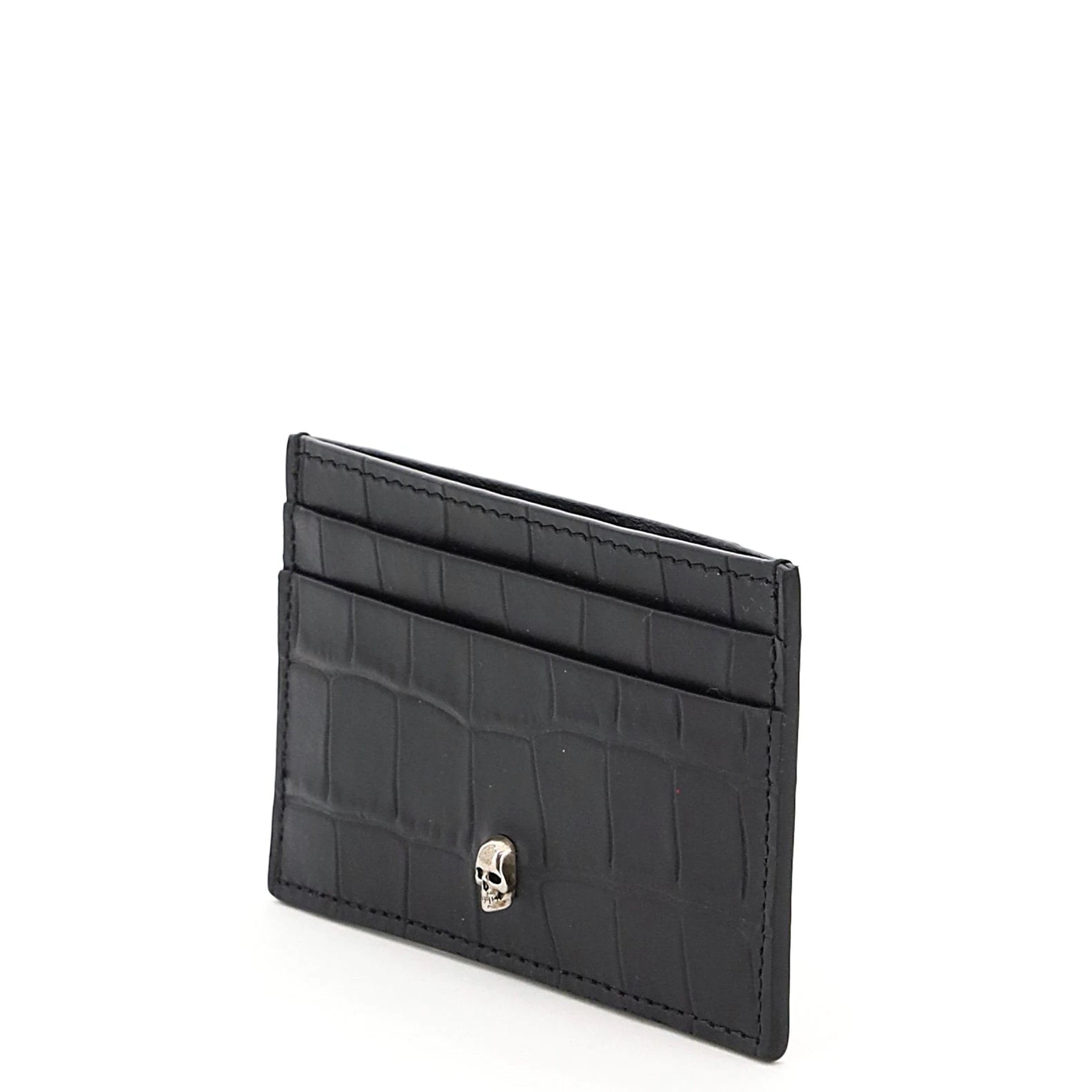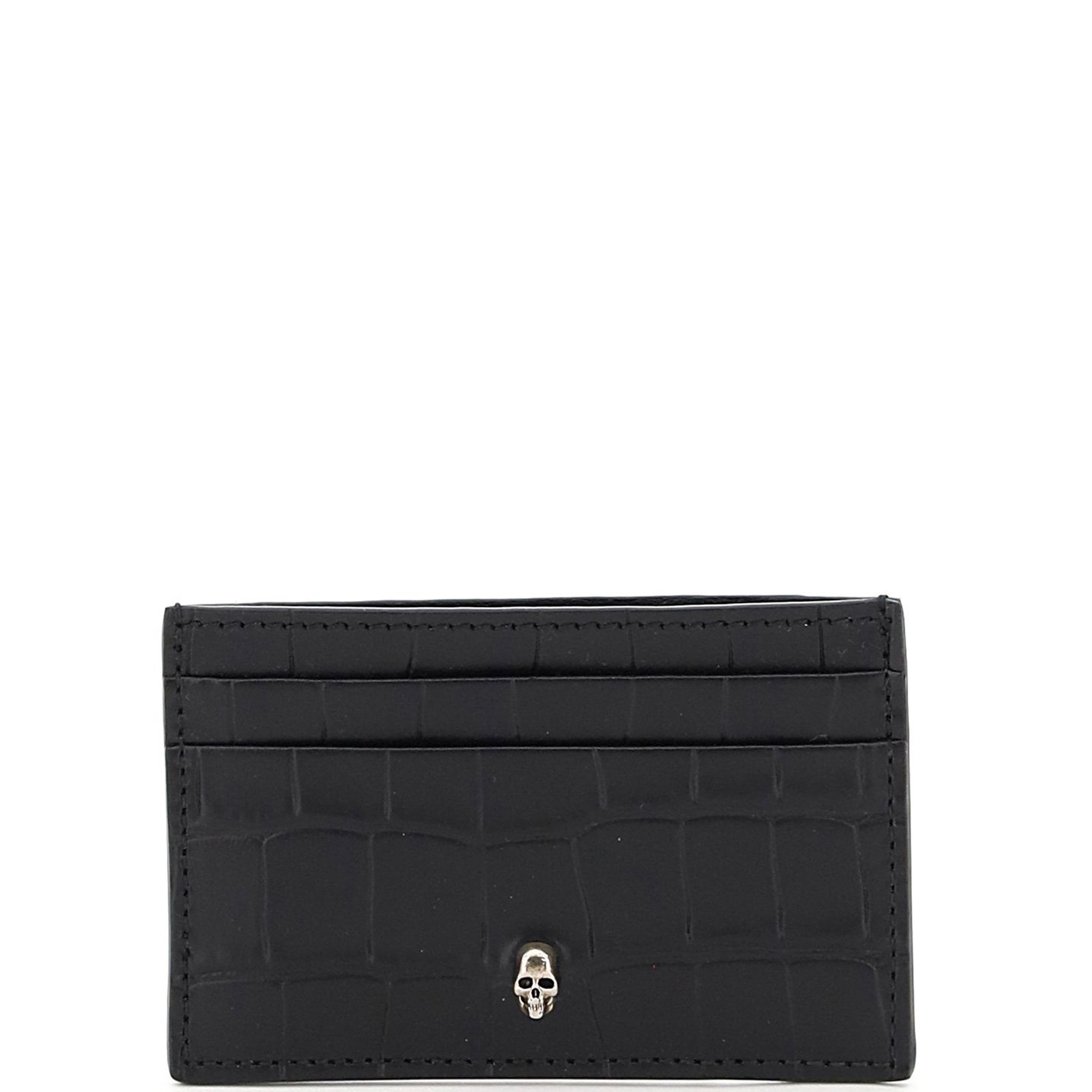 A flat embossed croc card holder with three card slots. Finished with the classic silver skull.