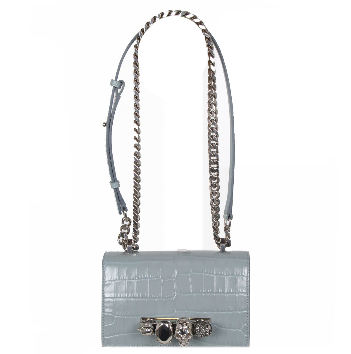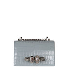 Jewelled Knuckle Satchel Mini Croc, Blue/Grey