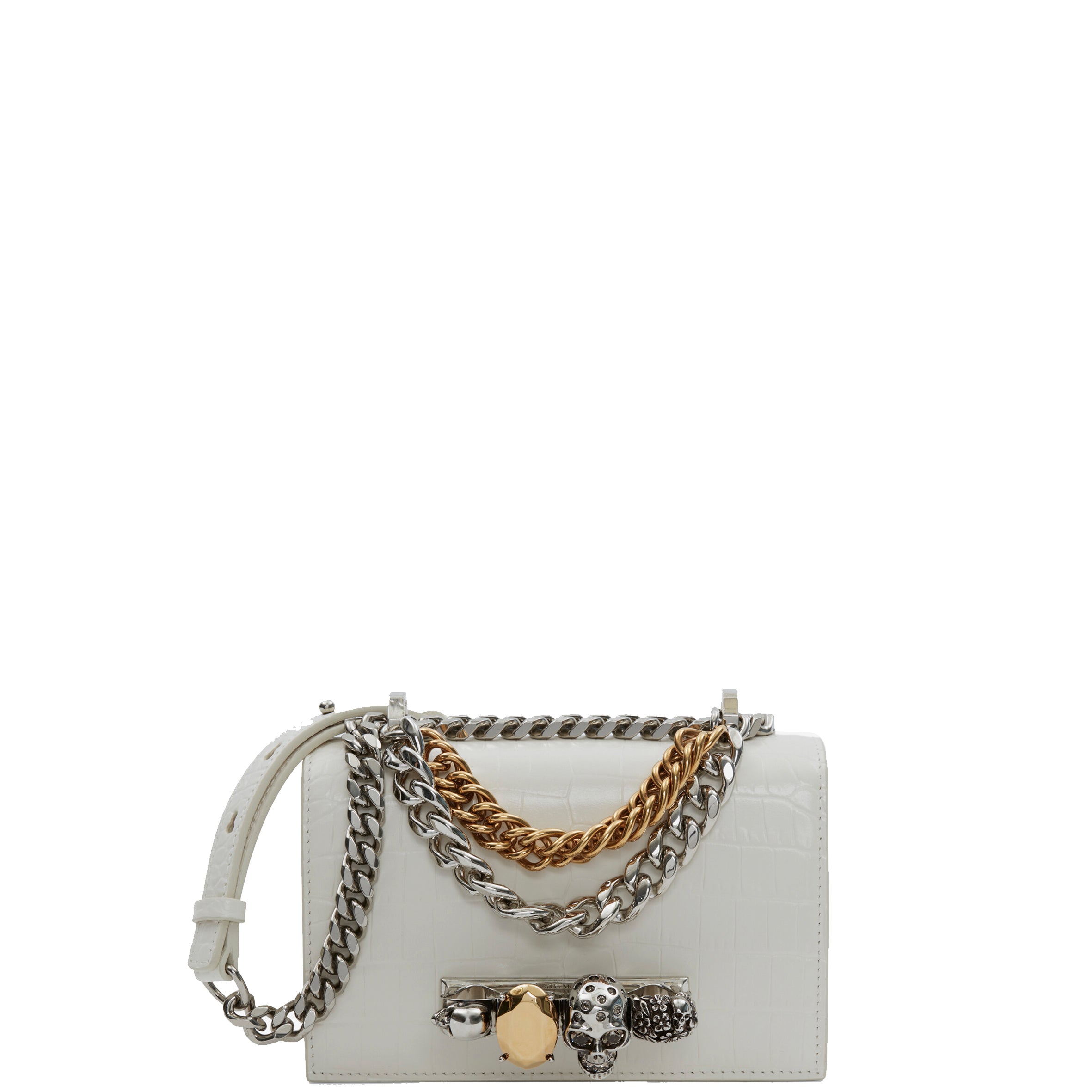 Jewelled Knuckle Satchel Mini, Ivory