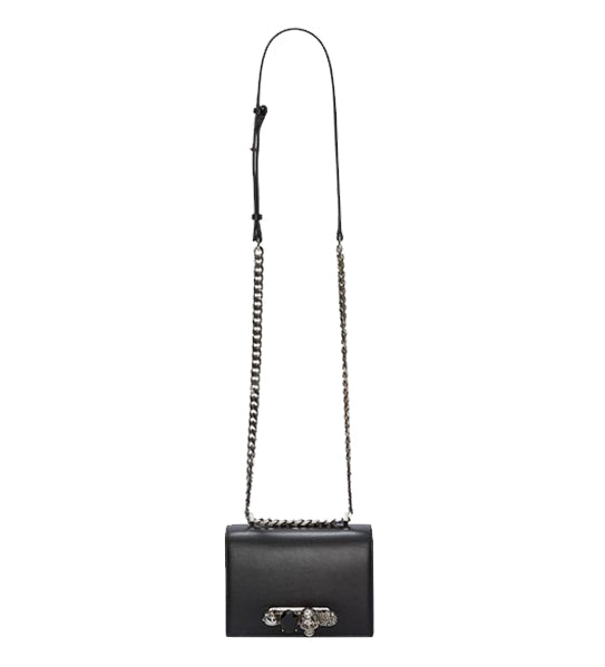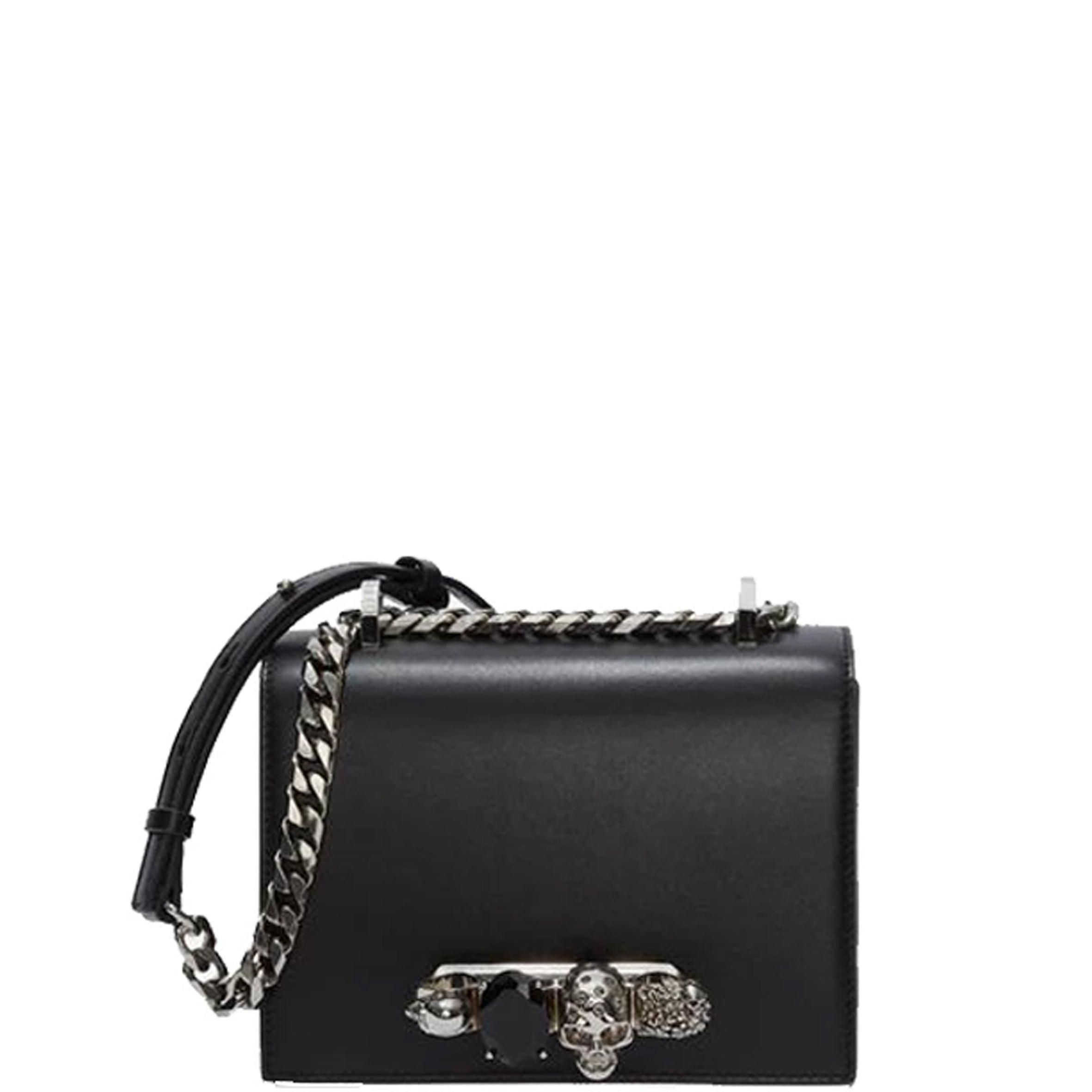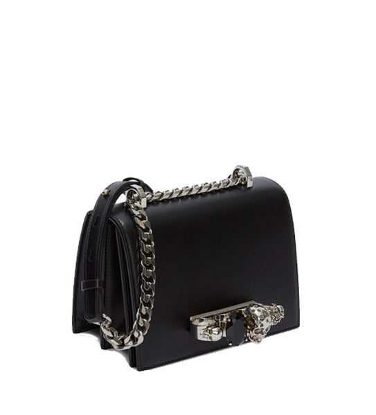 Jewelled Knuckle Satchel Small Smooth, Black/Silver