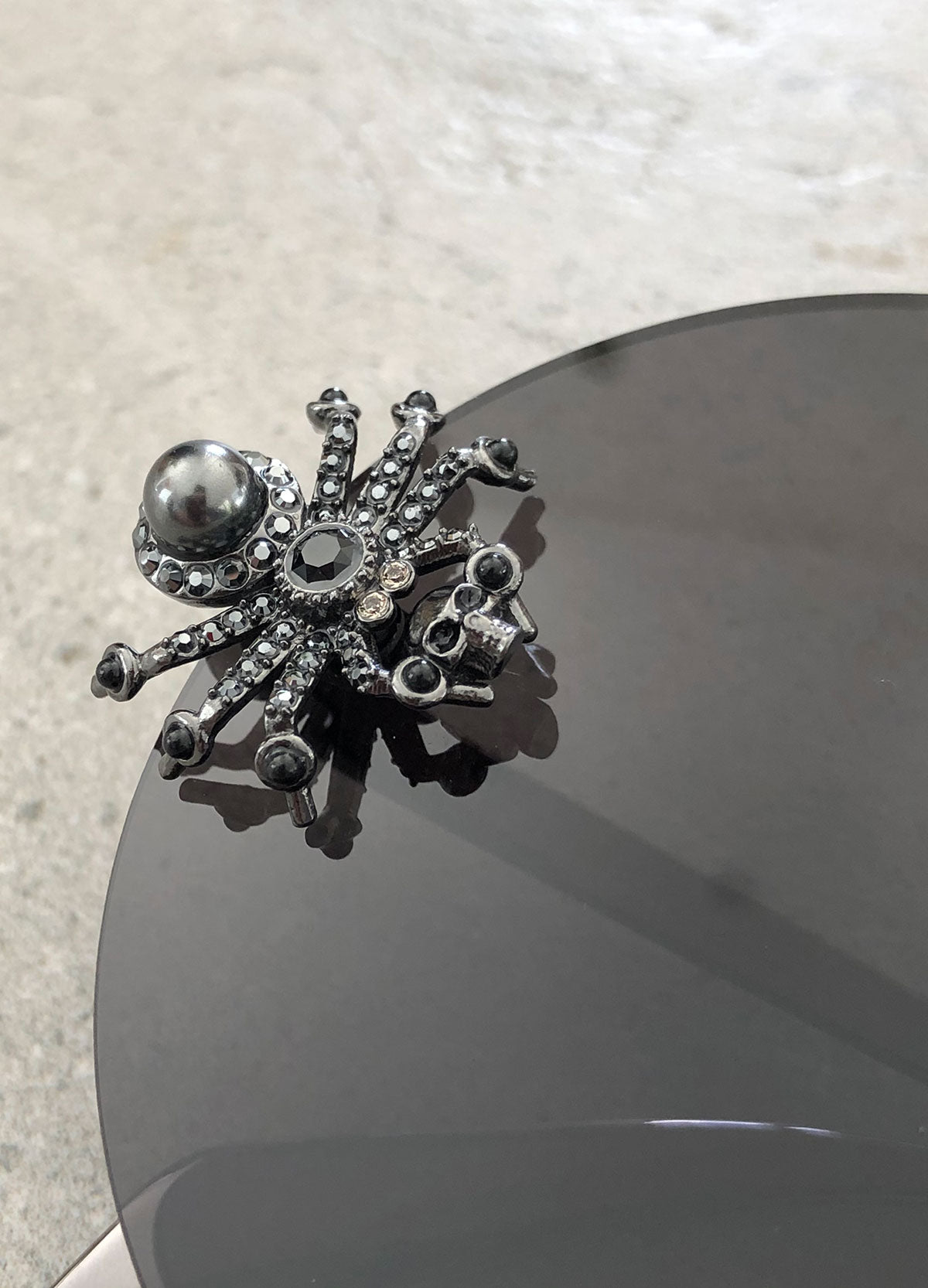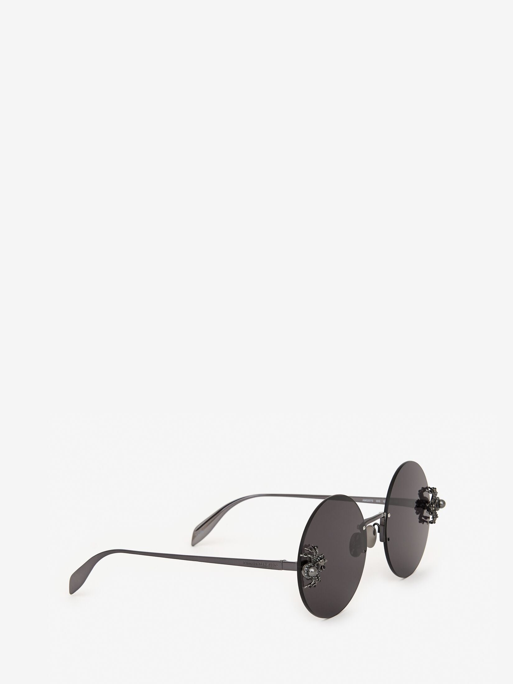 Round Jewelled Spider Sunglasses, Ruthenium/Grey