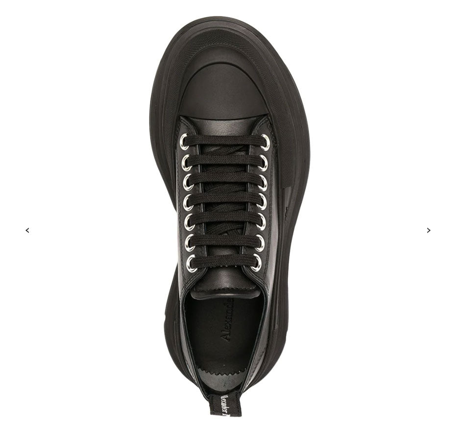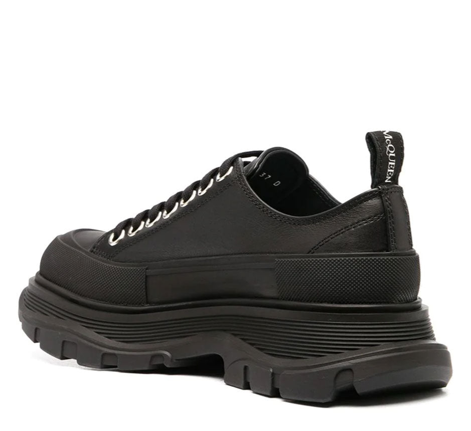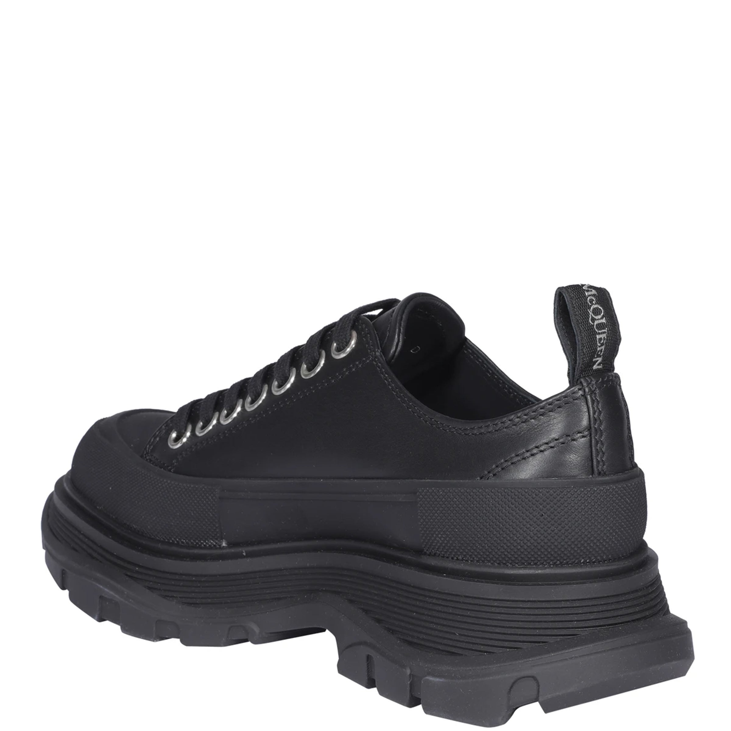 The Tread Slick ankle boots hail from Alexander McQueen's Hybrid collection. A series of mix-and-match influences that combine to create fresh new silhouettes. They're made from black leather with eyelet lace-ups and are set on oversized rubber tread soles for which they're named. Branding along the heel and stamping along the side.