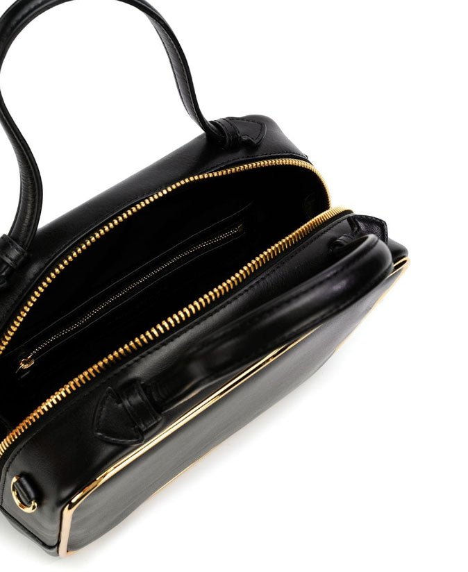 Black leather Halo tote from Alexander Wang featuring a top handle, a shoulder strap, a top zip fastening and gold-tone hardware.