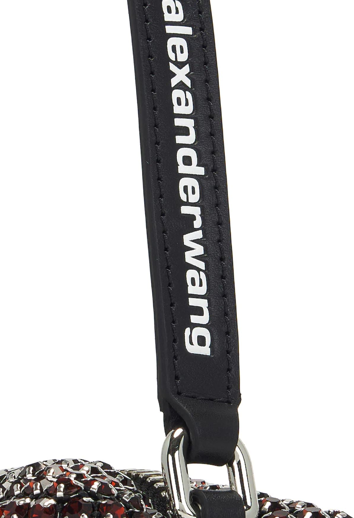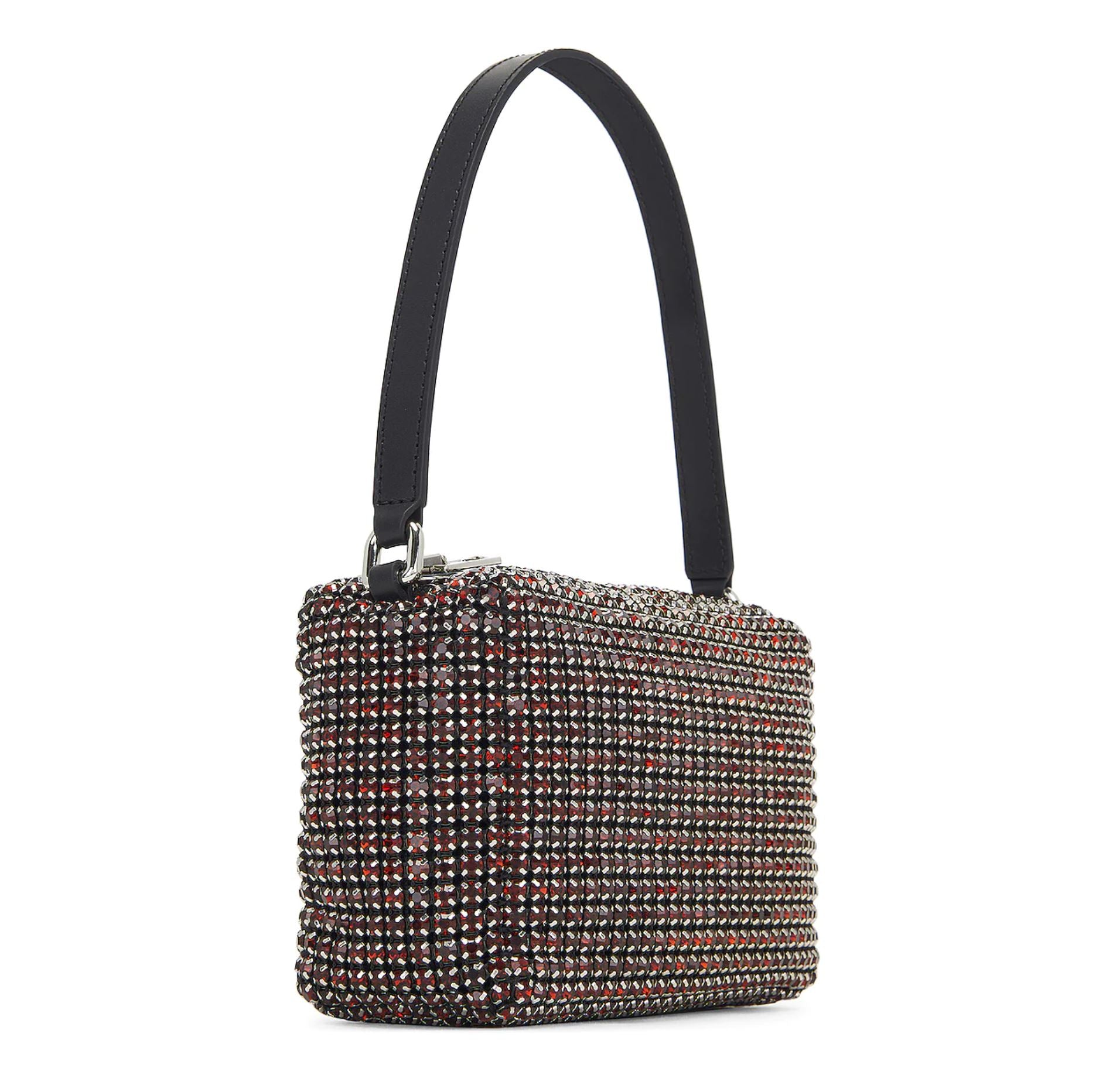 This medium pouch features crystal glass rhinestone embellishments and a statement zipper. The interior lining is made from nylon with an interior card slots. The handle is imprinted with the logo.
