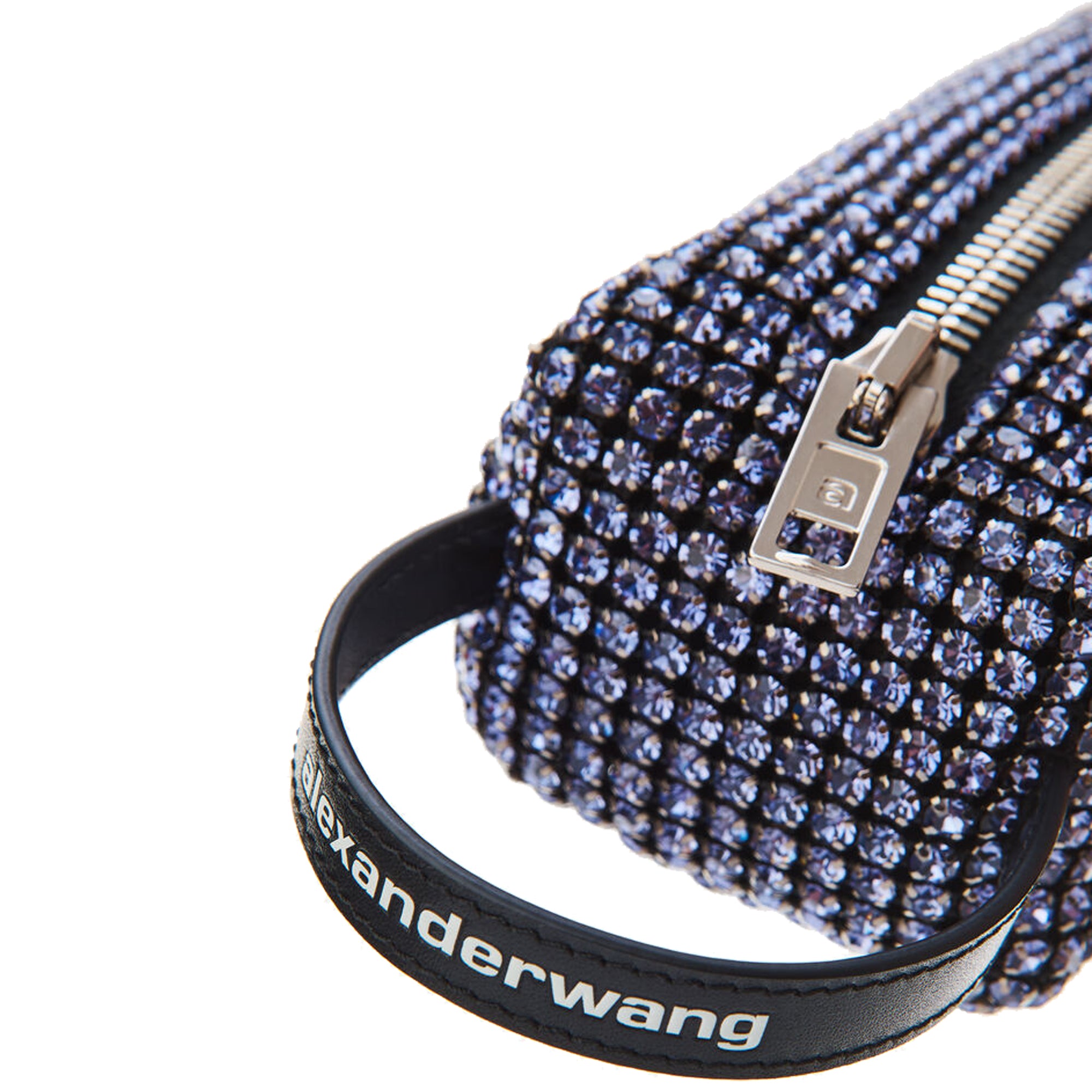 This mesh pencil case features crystal glass rhinestone embellishments and a statement zipper. The interior lining is made from nylon and handle is imprinted with the logo.