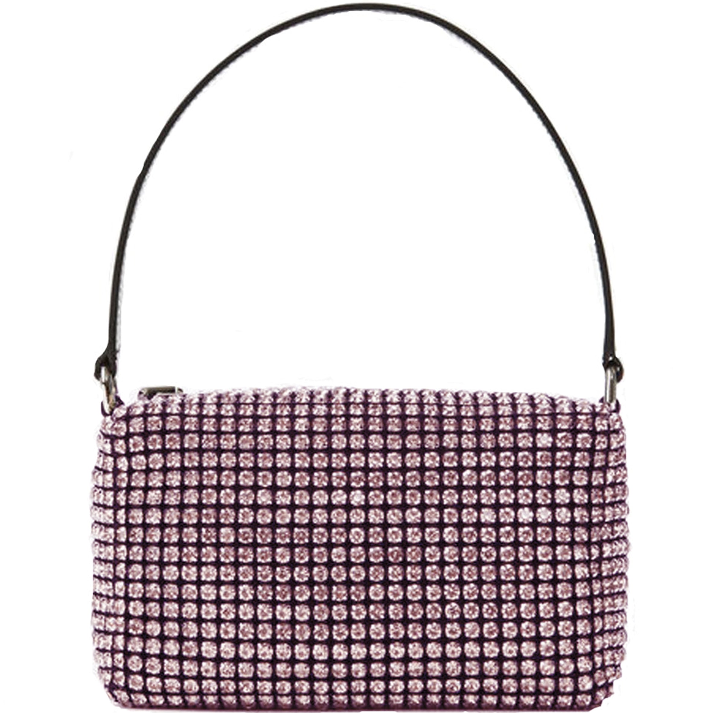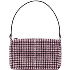 This medium pouch features crystal glass rhinestone embellishments and a statement zipper. The interior lining is made from nylon with an interior card slots. The handle is imprinted with the logo.