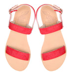 A simple two-band design lends timeless appeal to casual leather flat sandals. Buckled slingback strap.