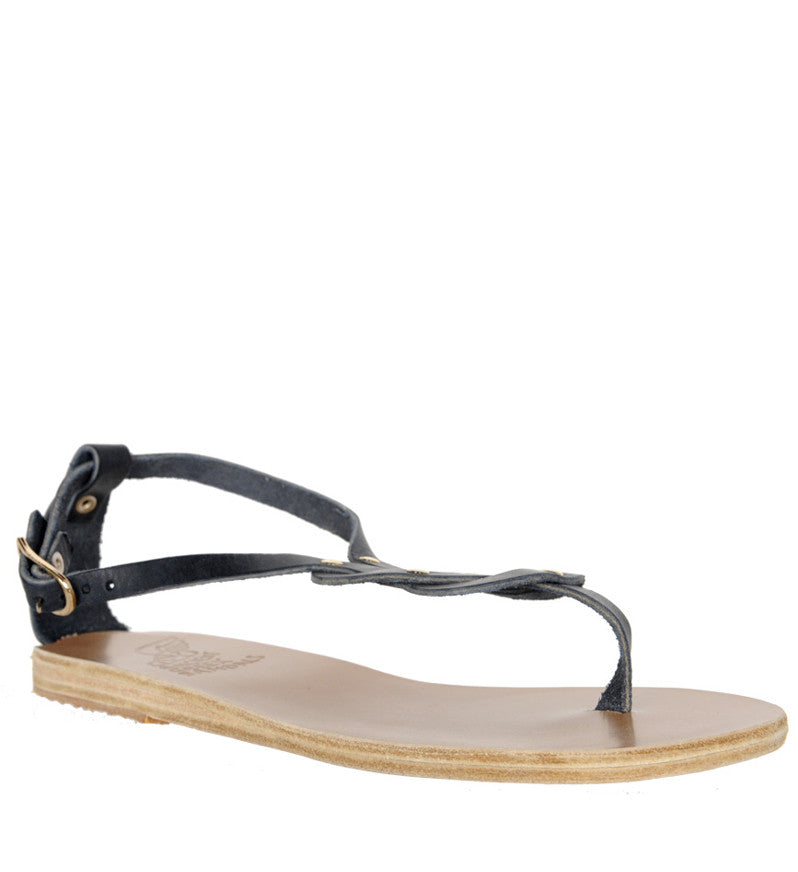 These sandals feature a Hercules knot in a dark marine colour leather. Adjustable ankle strap with Signature wing-shaped buckle fastening.