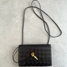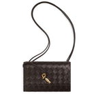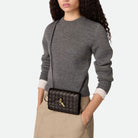 Pouch in Intrecciato nappa leather with signature knot closure and sliding strap.