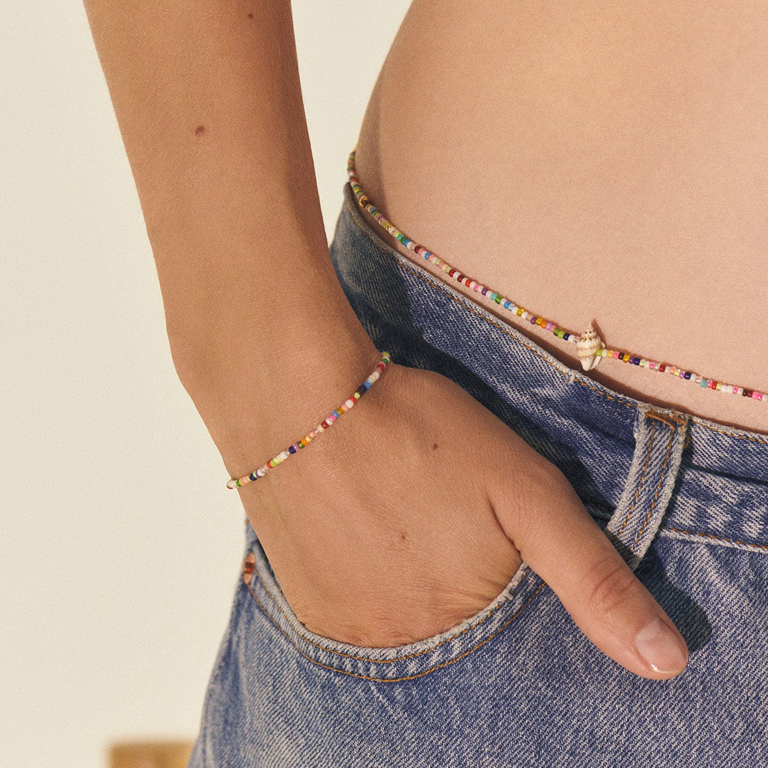 Fiesta, a Spanish word for a festive gathering with music and dancing, promises joy. We promise you’ll get the same feel when wearing your Fiesta Shell Bracelet.