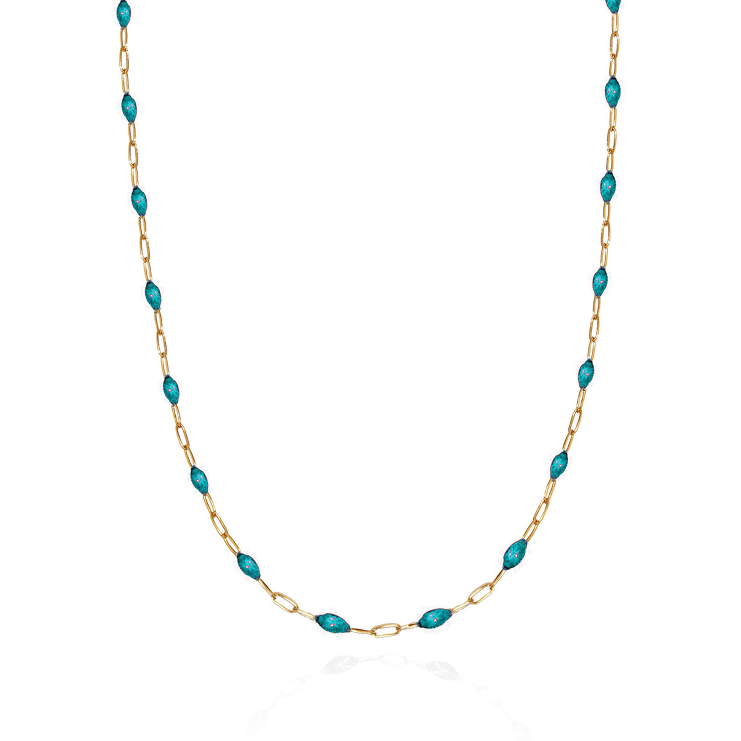 Made out of royal-colored enamel and gold-plated silver, this necklace will make you feel like a true Arabian princess! Wear it solo or mix&match with other gold-plated chain necklaces.