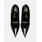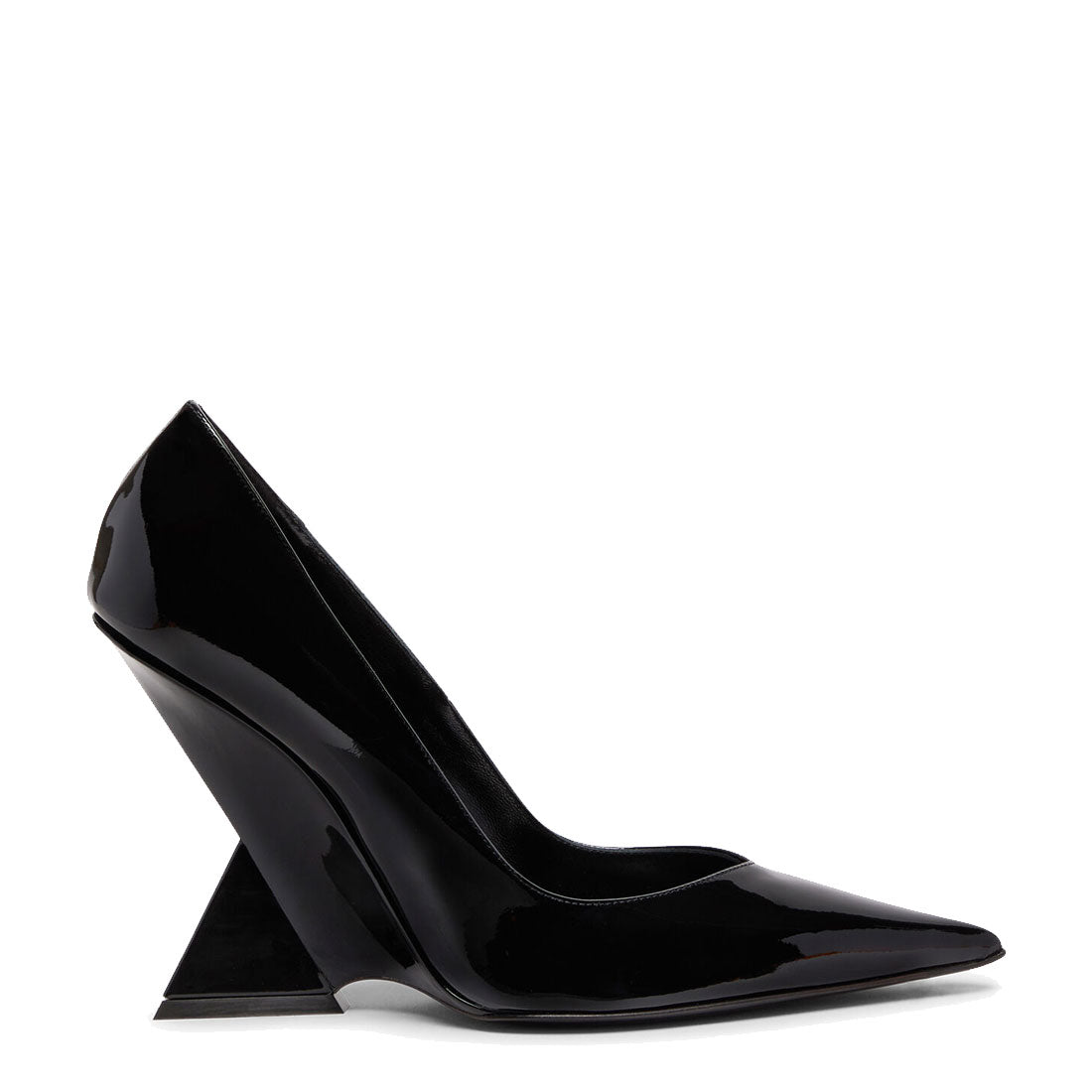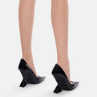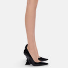 ''Cheope'' pump in black patent leather with pyramidal wedge, height 105mm.