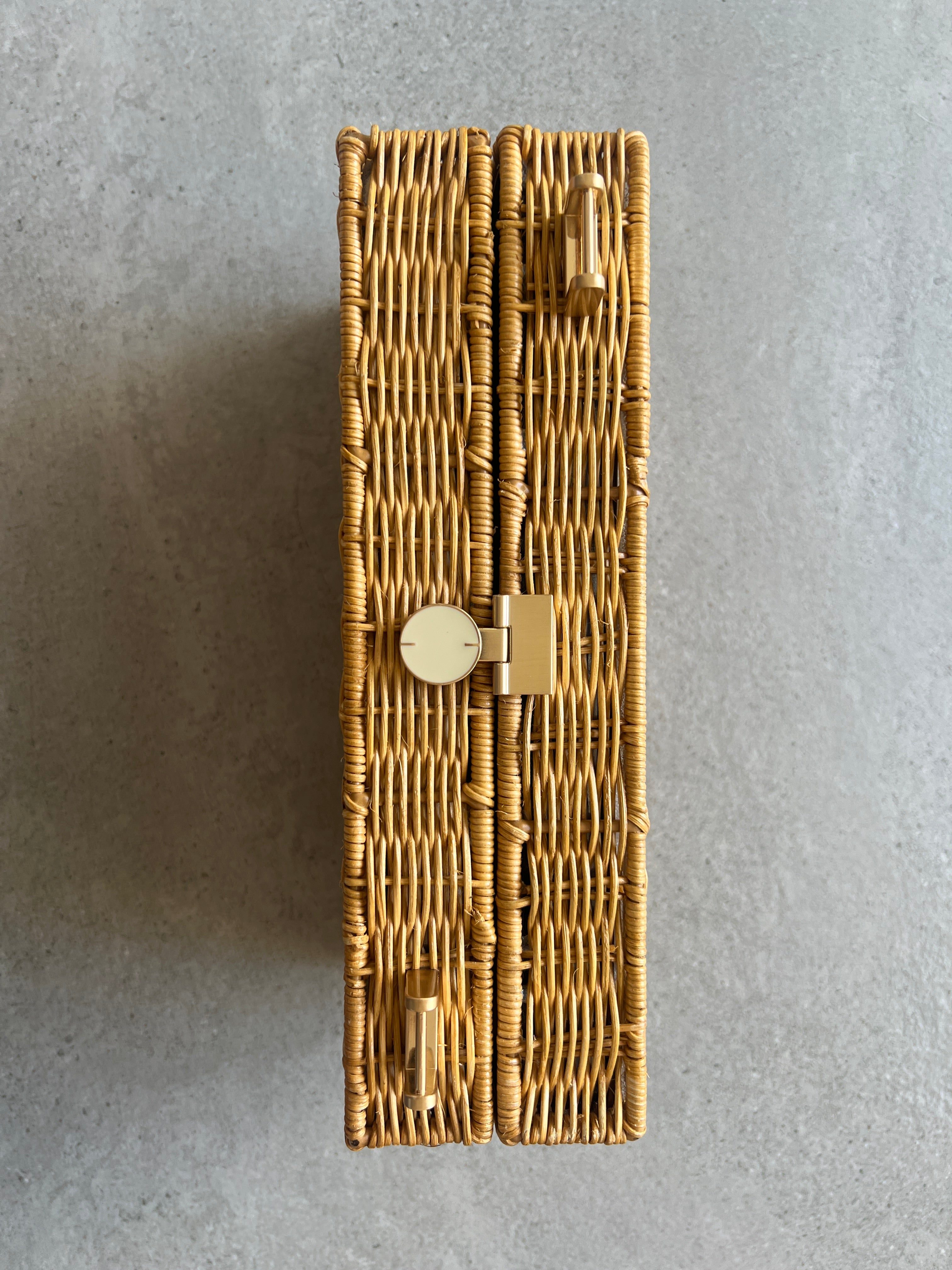 Material: 100% NATURAL RATTAN, 100% COW LEATHER, 100% COTTON, 100% BRASS PLATED METAL