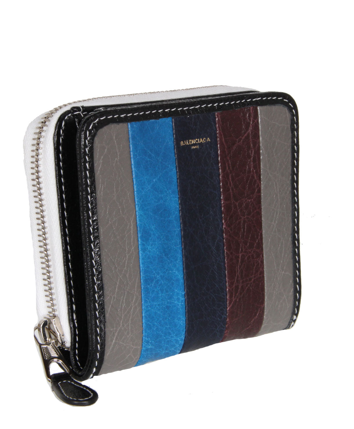 Balenciaga's stripe long zip wallet in lambskin leather. Leather zipper pull on coin pocket, 3 bill compartments and 12 card slots. Lined in black cotton canvas with Balenciaga embossed logo.