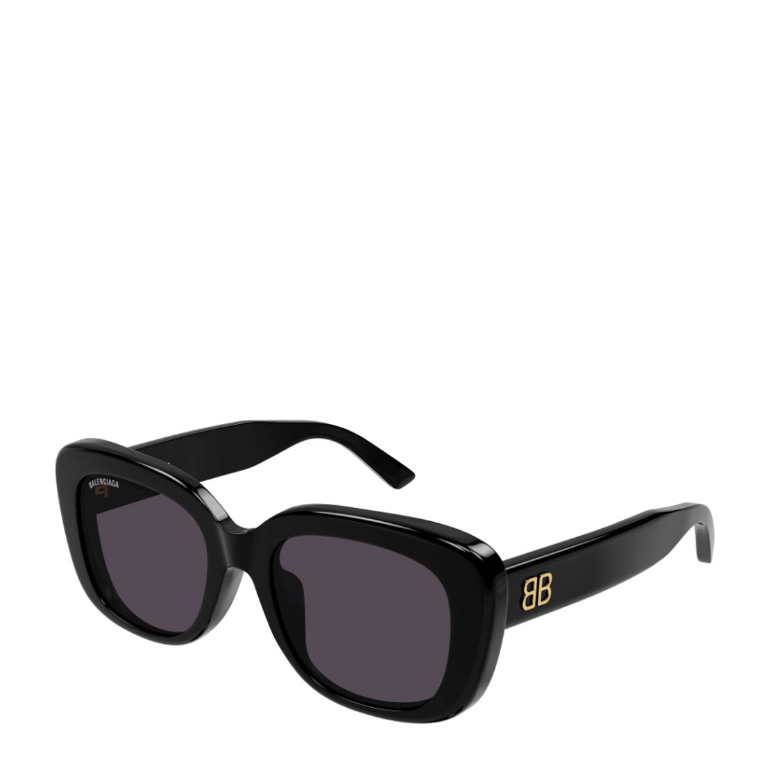 New BB Logo story, key signature for Balenciaga Eyewear. Squared Korean Fitting feminine shape featuring full acetate construction. BB Logo on both temples.