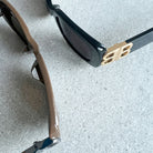 An updated Asian /Smart Fit option of the best selling Dynasty Rectangle Sunglasses in black acetate with black lenses, gold toned hardware. New Korean Dynasty shape featuring mid height temple, 100% aligned with the 2 global best sellers.