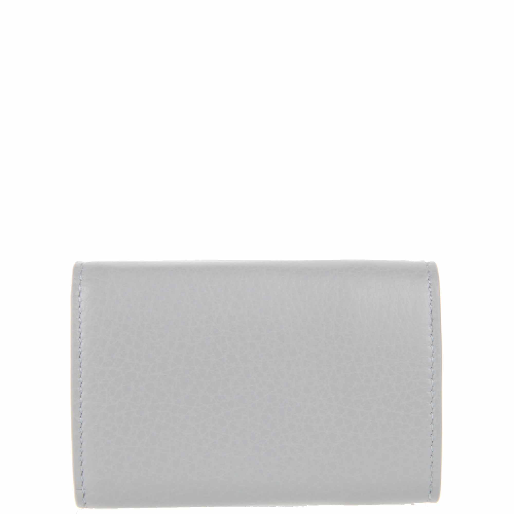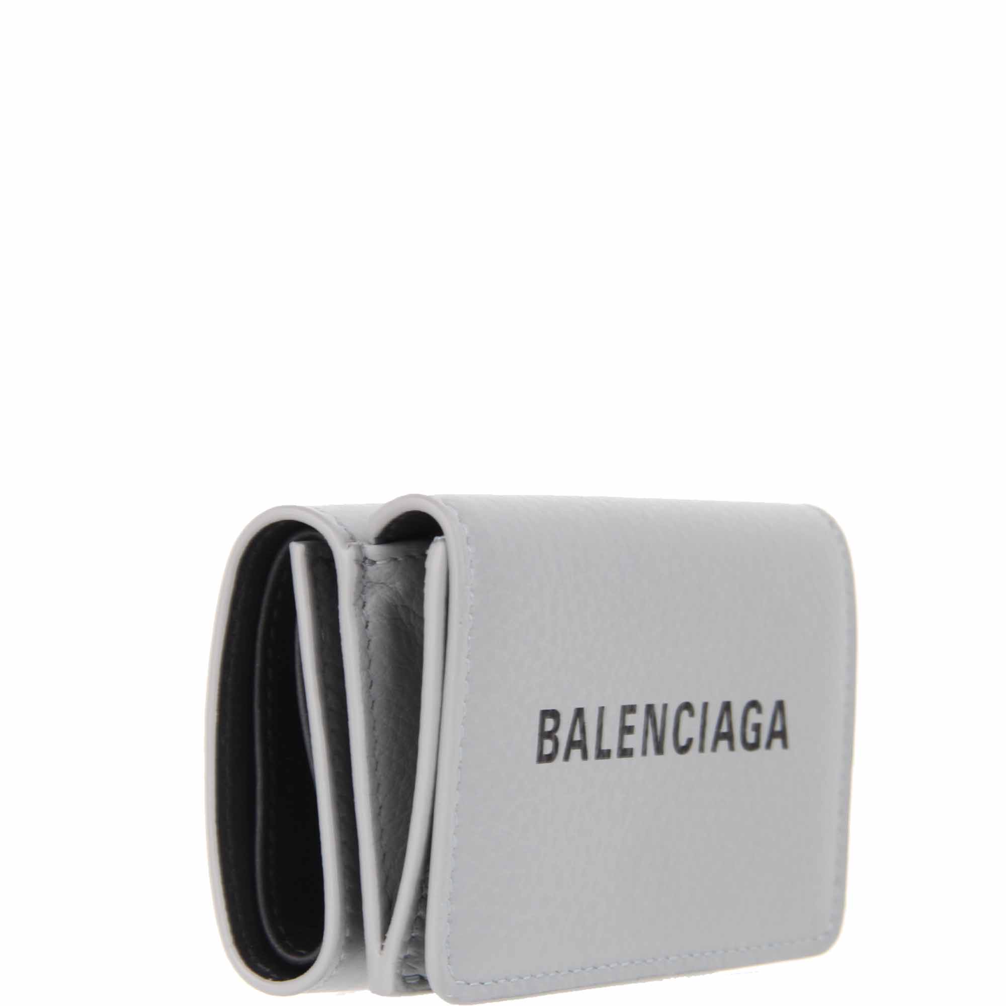 Balenciaga tiny petite wallet features a coin section with snap fastening, 3 card slots, and 1 bill compartment.